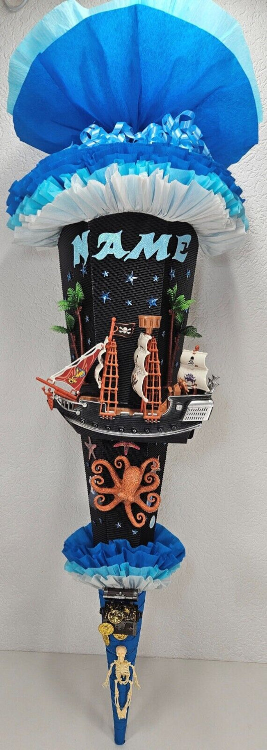 SCHULTÜTE ZUCKERTÜTE Pirat PIRATENSCHIFF UNIKAT Rohling 85cm schwarz blau