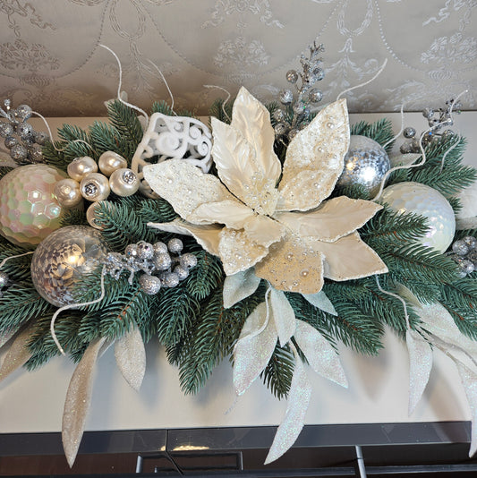Weihnachtsgirlande + Adventsgesteck + eine Elchfigur, Kamingesteck, Chrismes, Rehe, Weihnachtsdeko Weihnachtsblumen Tischdekor, Tischgesteck, Winterdekor,Advent Weihnachtsdekoration Geschenkideen verschneite zweige weiß gold