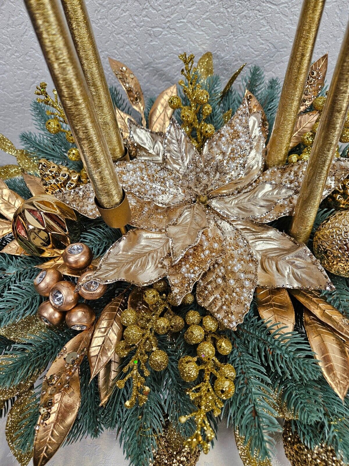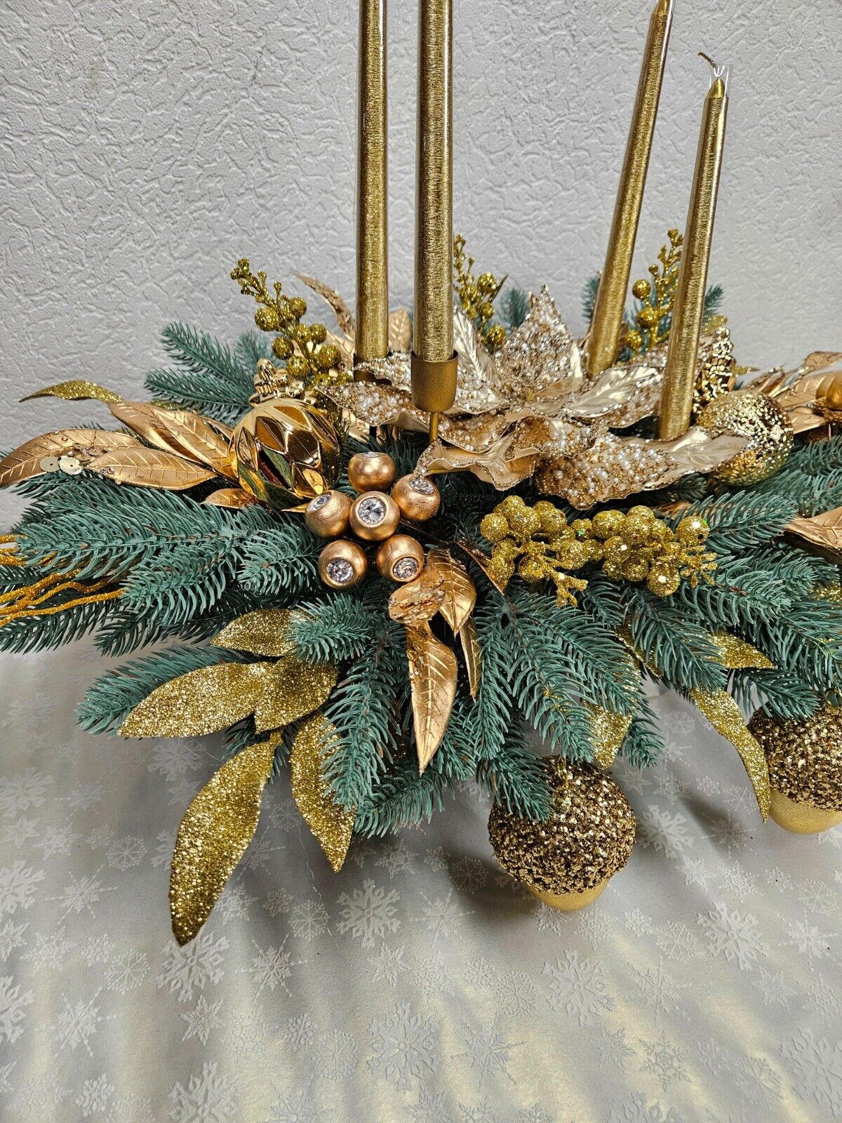 1. Adventsgesteck aus künstlichen blauen Tannenzweigen (Wurden in Europa hergestellt). DER Dekor für die Weihnachtszeit.