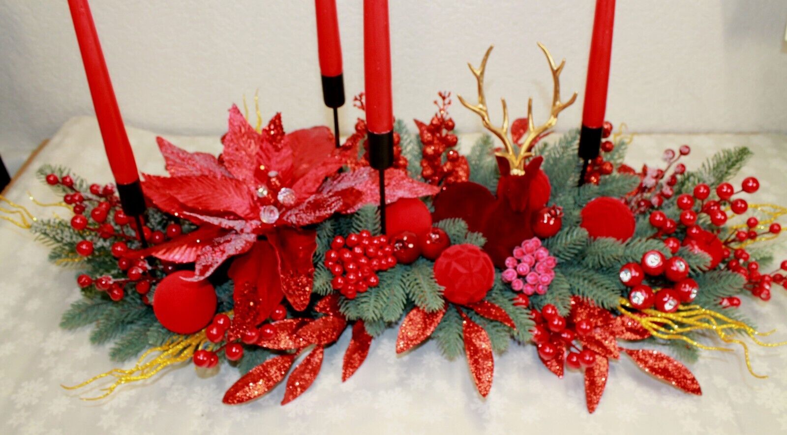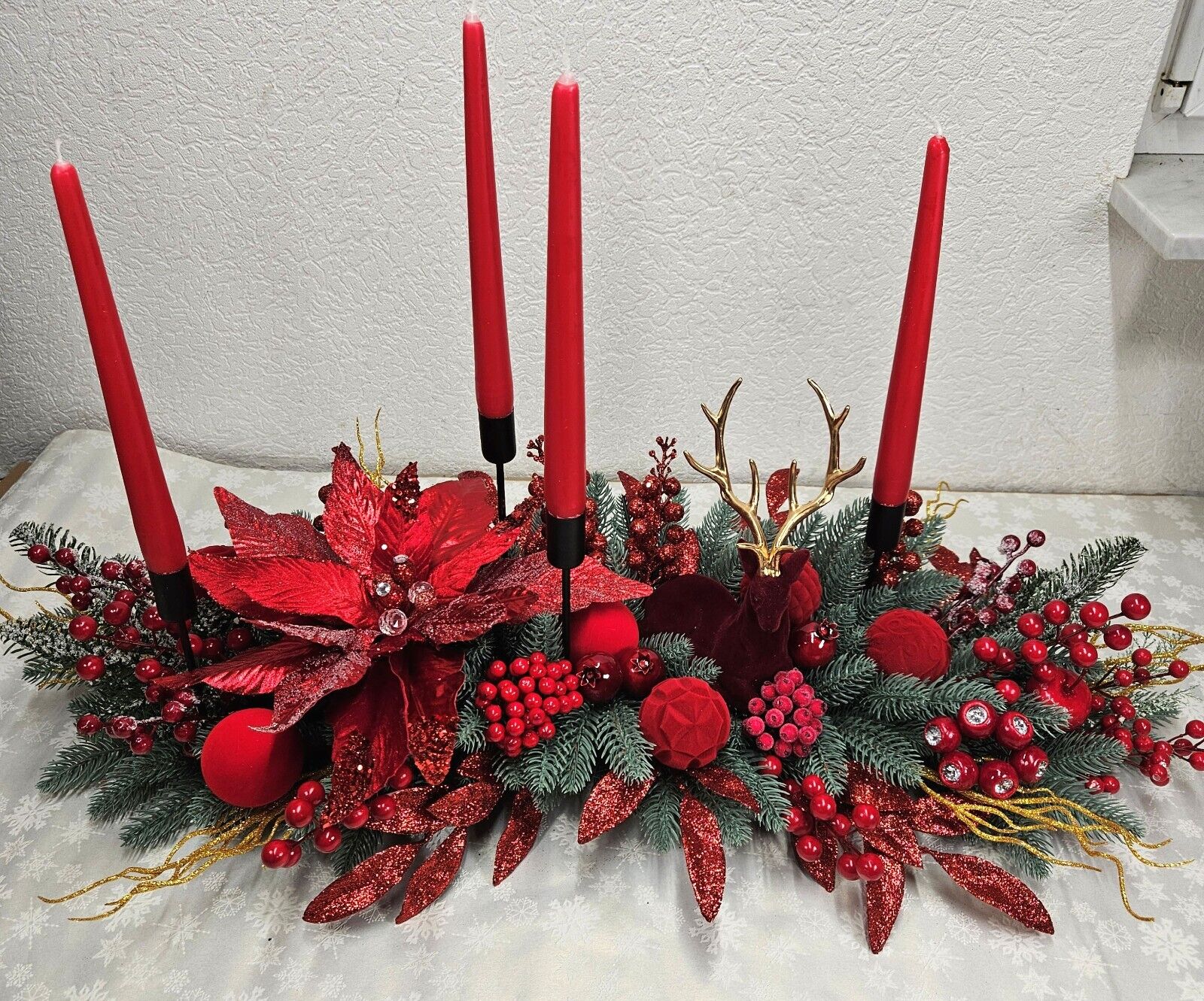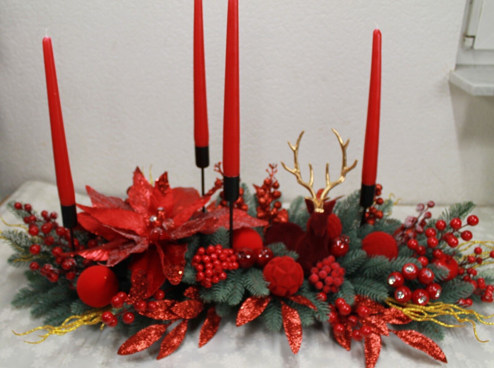 Advent Gesteck + 4 Kerzen Tischdekor Tischgesteck Winterdekor Adventdekoration