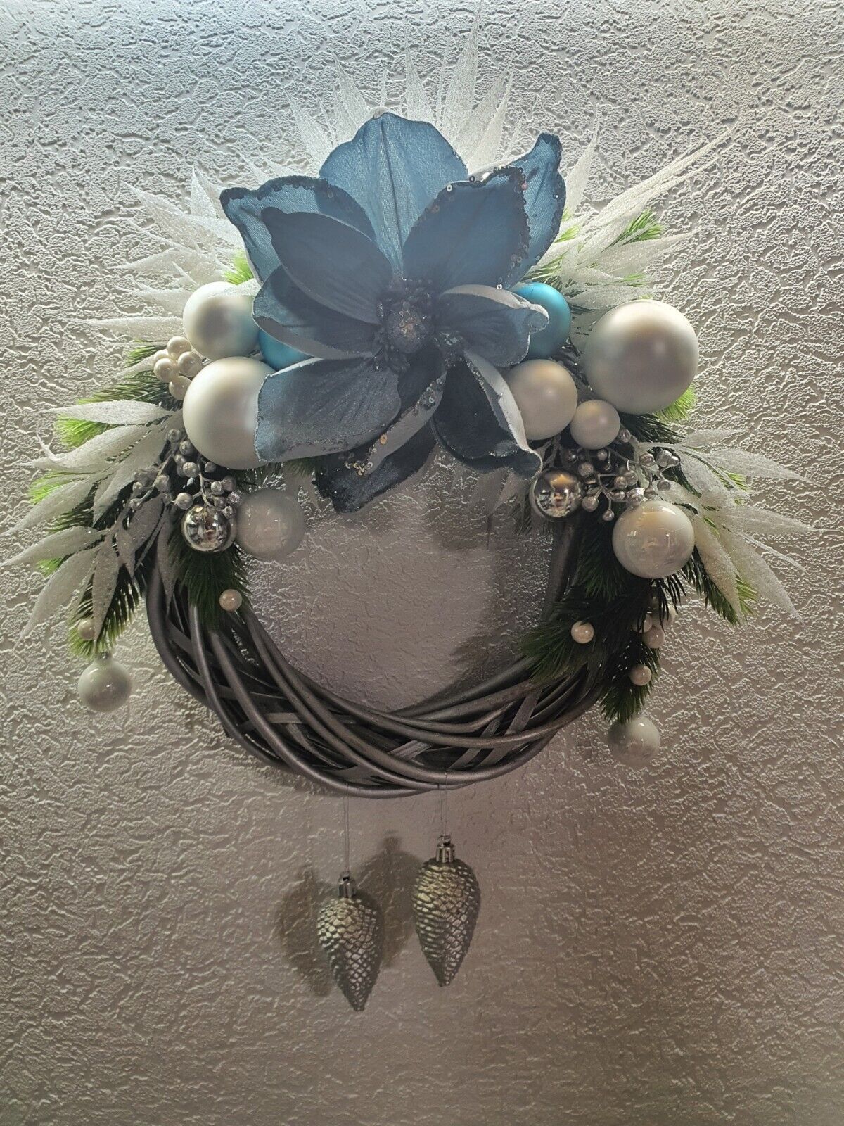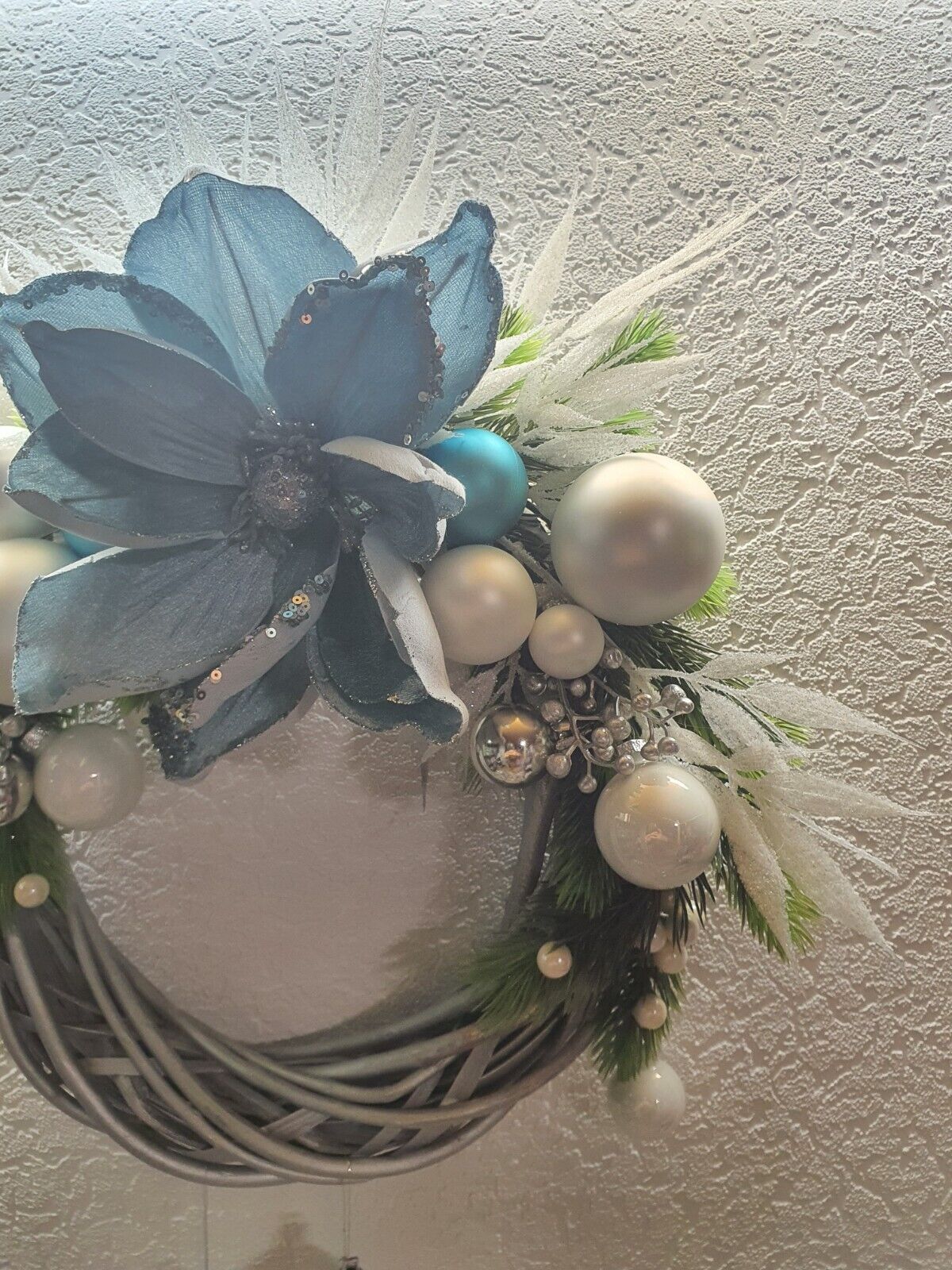 Dekor Deko Weihnachtsdekoration Girlande Adventkranz Wanddekor türkis silber