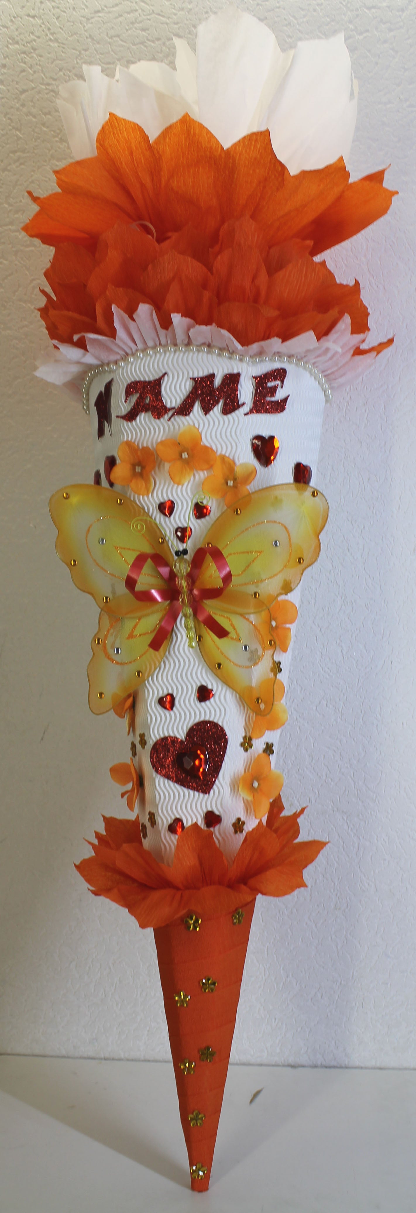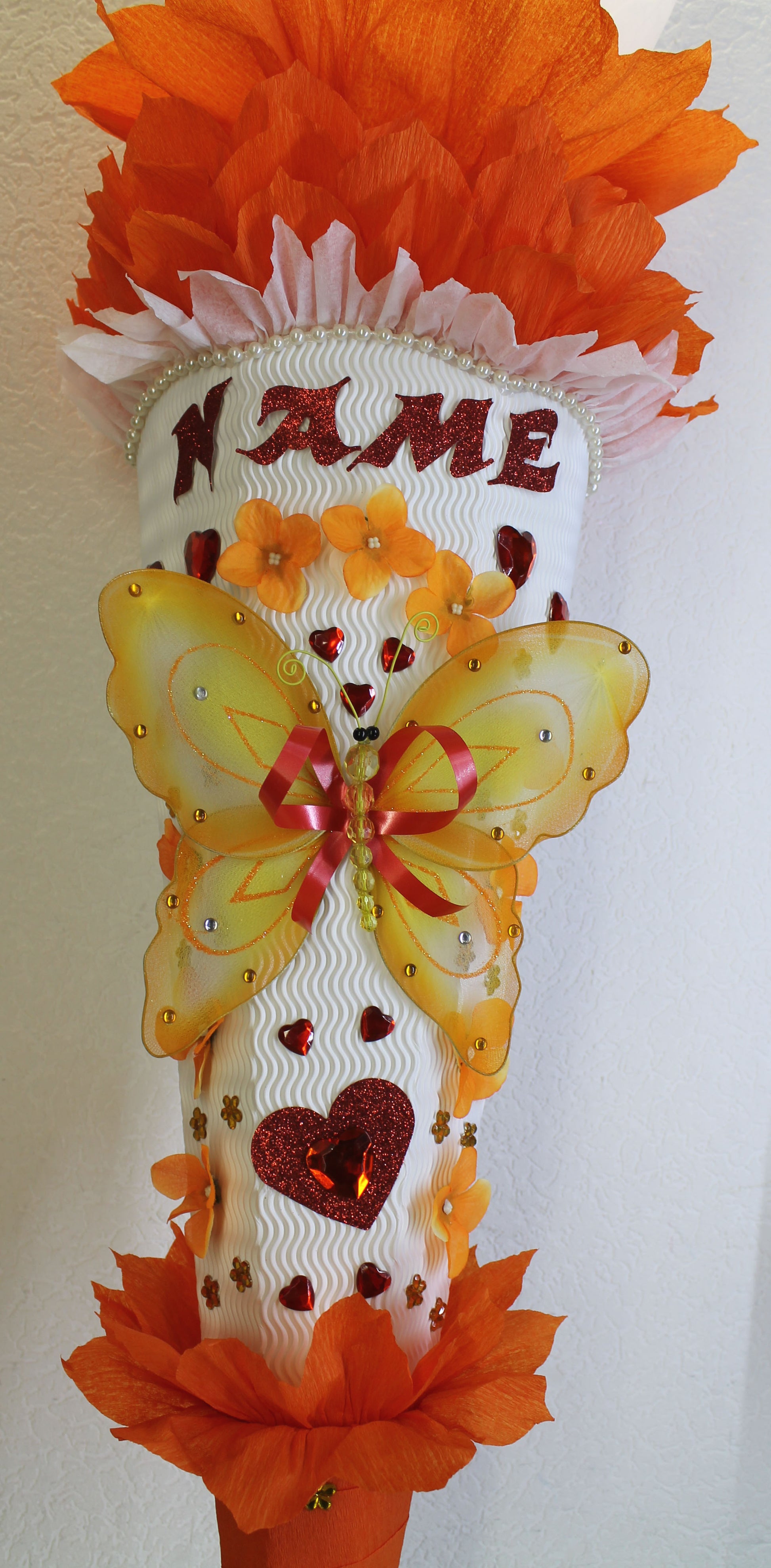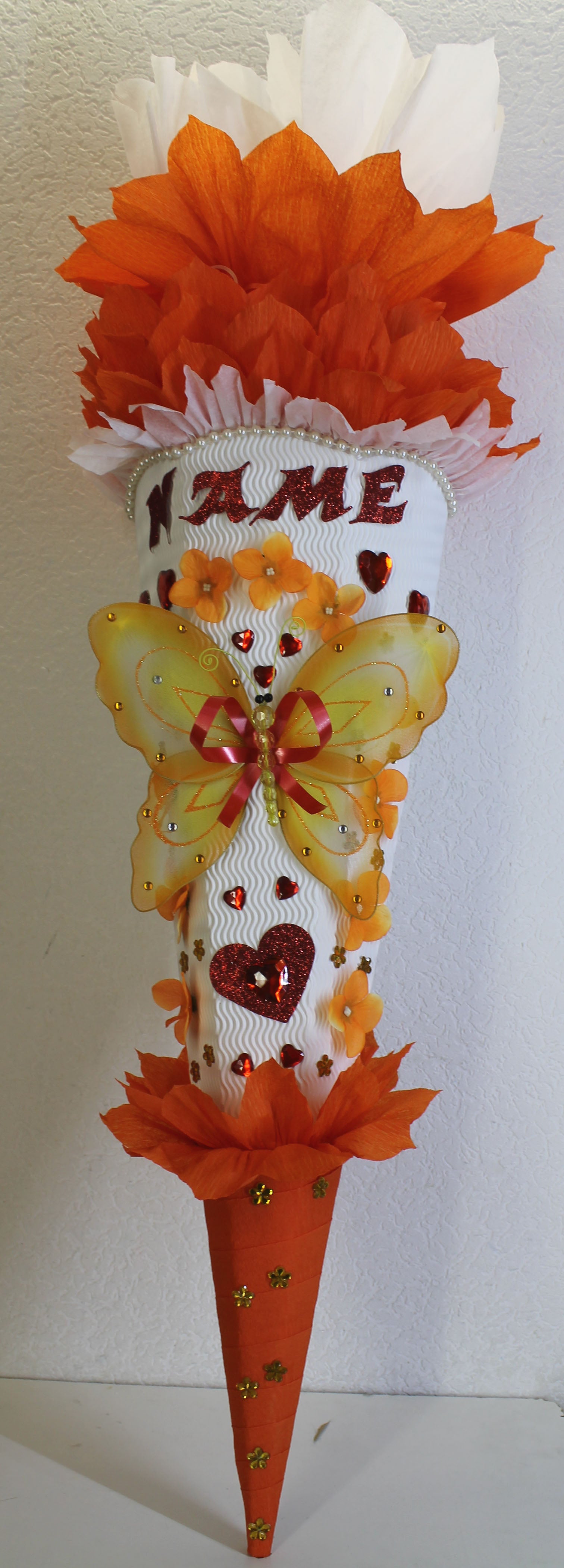 SCHULTÜTE ZUCKERTÜTE Schmetterling Herz für MÄDCHEN EINSCHULUNG 2025 orange rot weiß