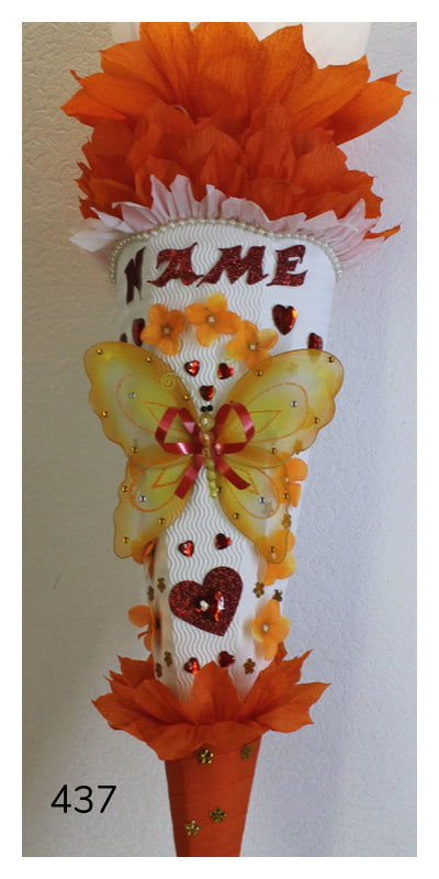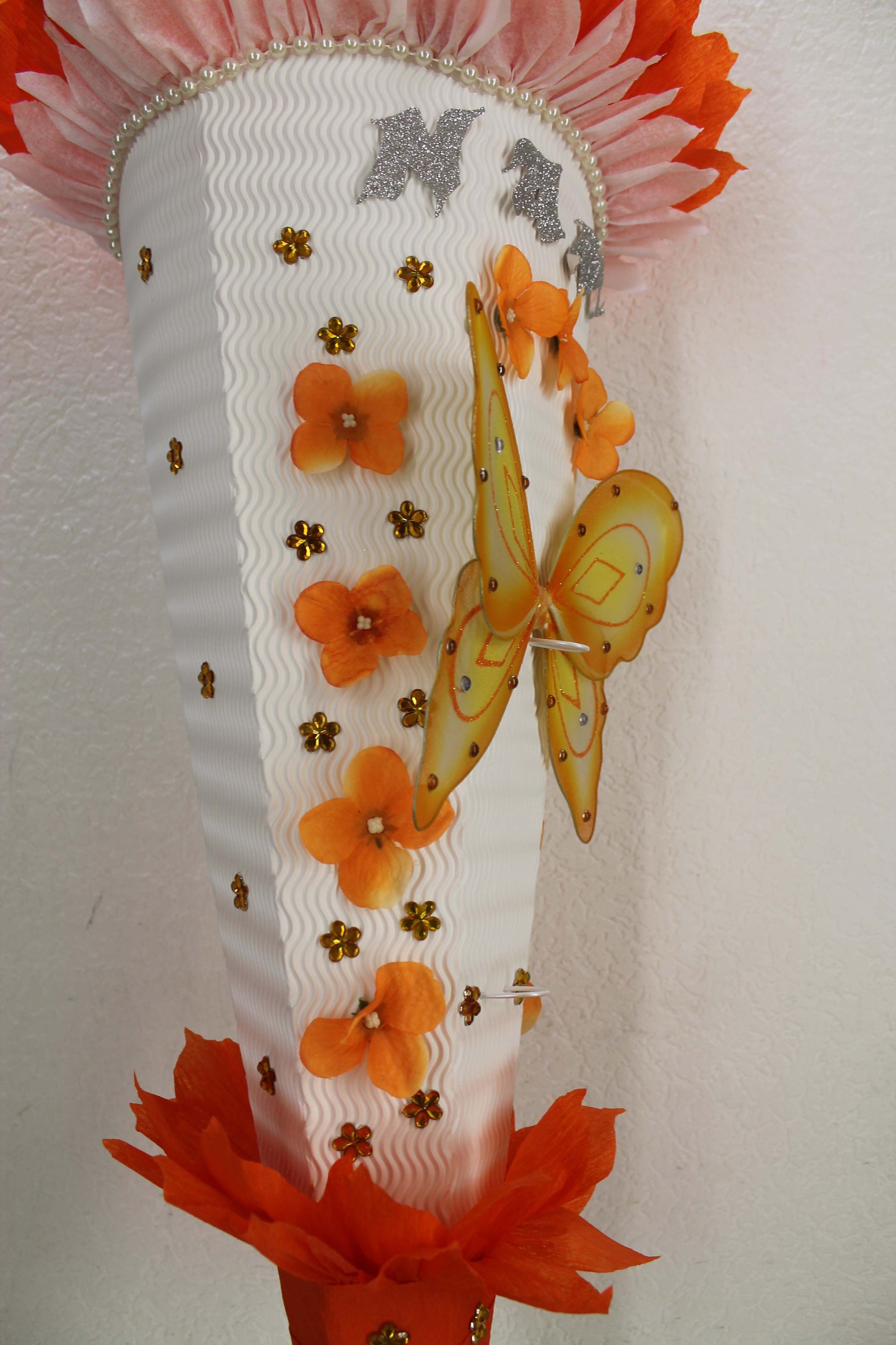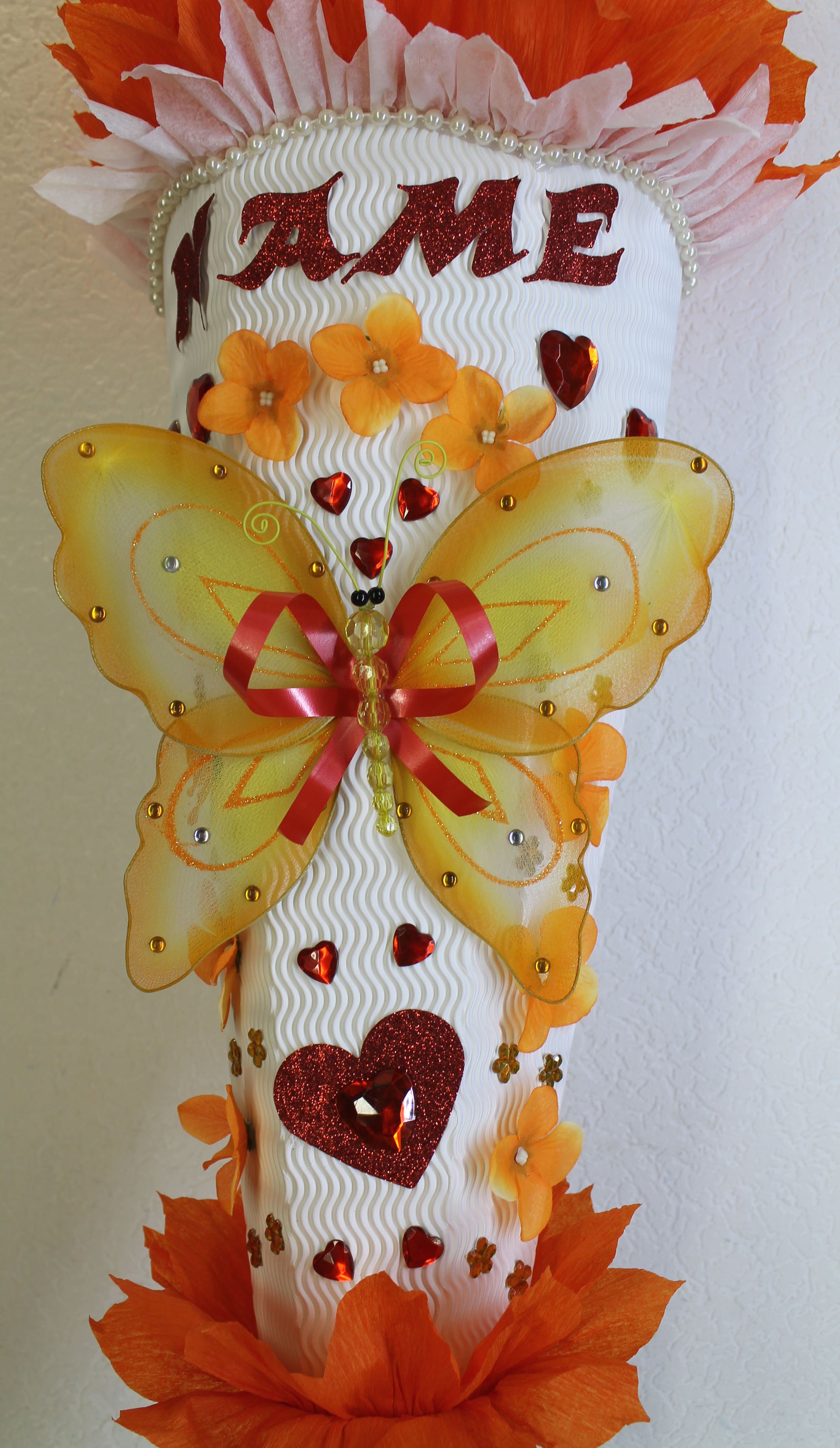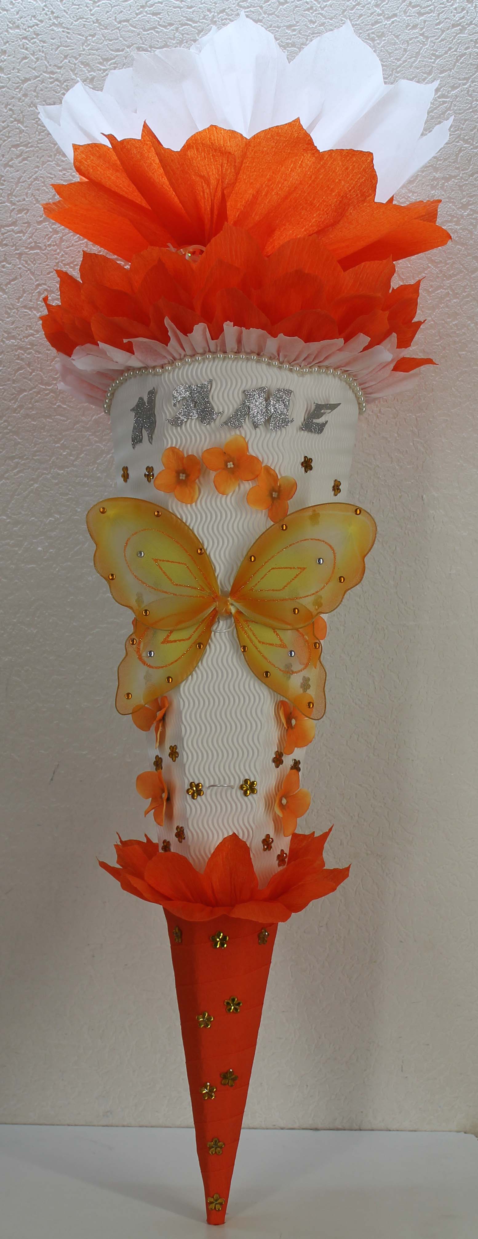 SCHULTÜTE ZUCKERTÜTE Schmetterling Herz für MÄDCHEN EINSCHULUNG 2025 orange rot weiß