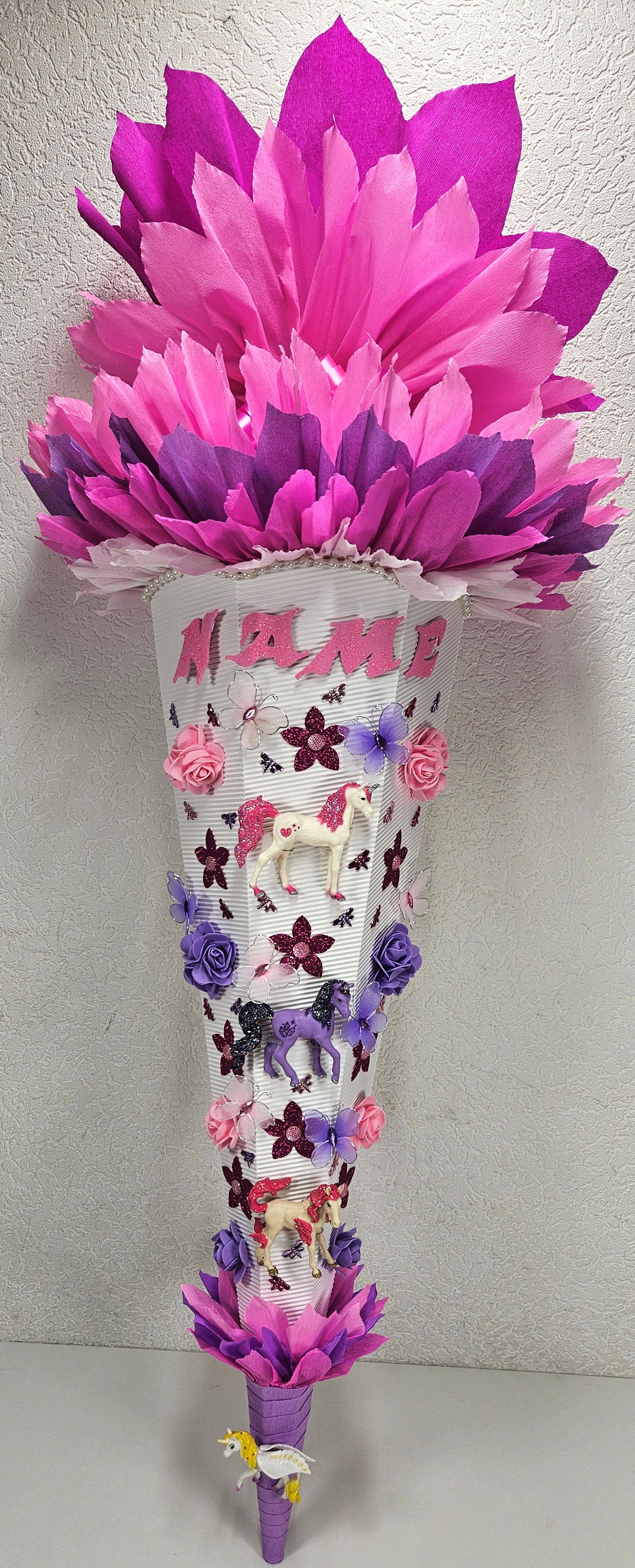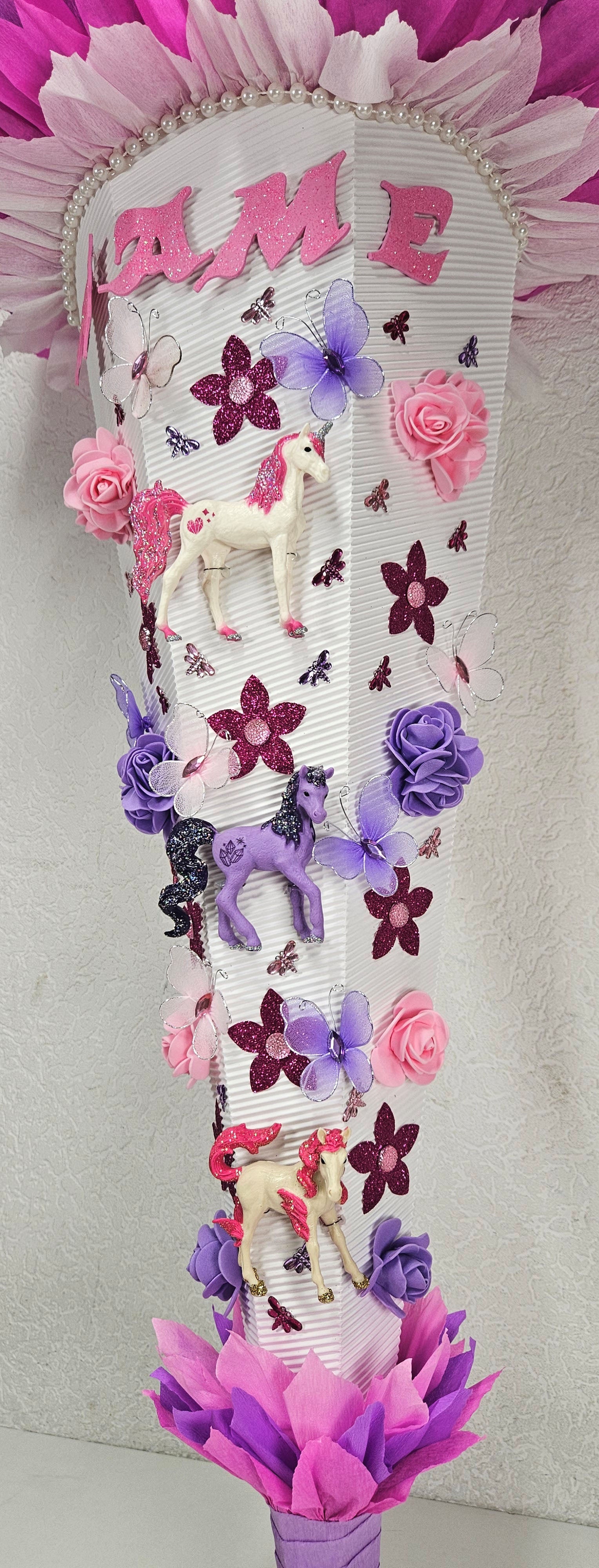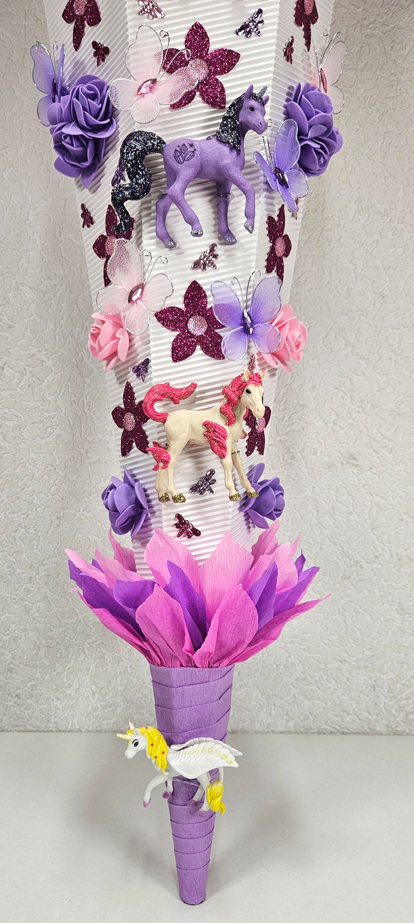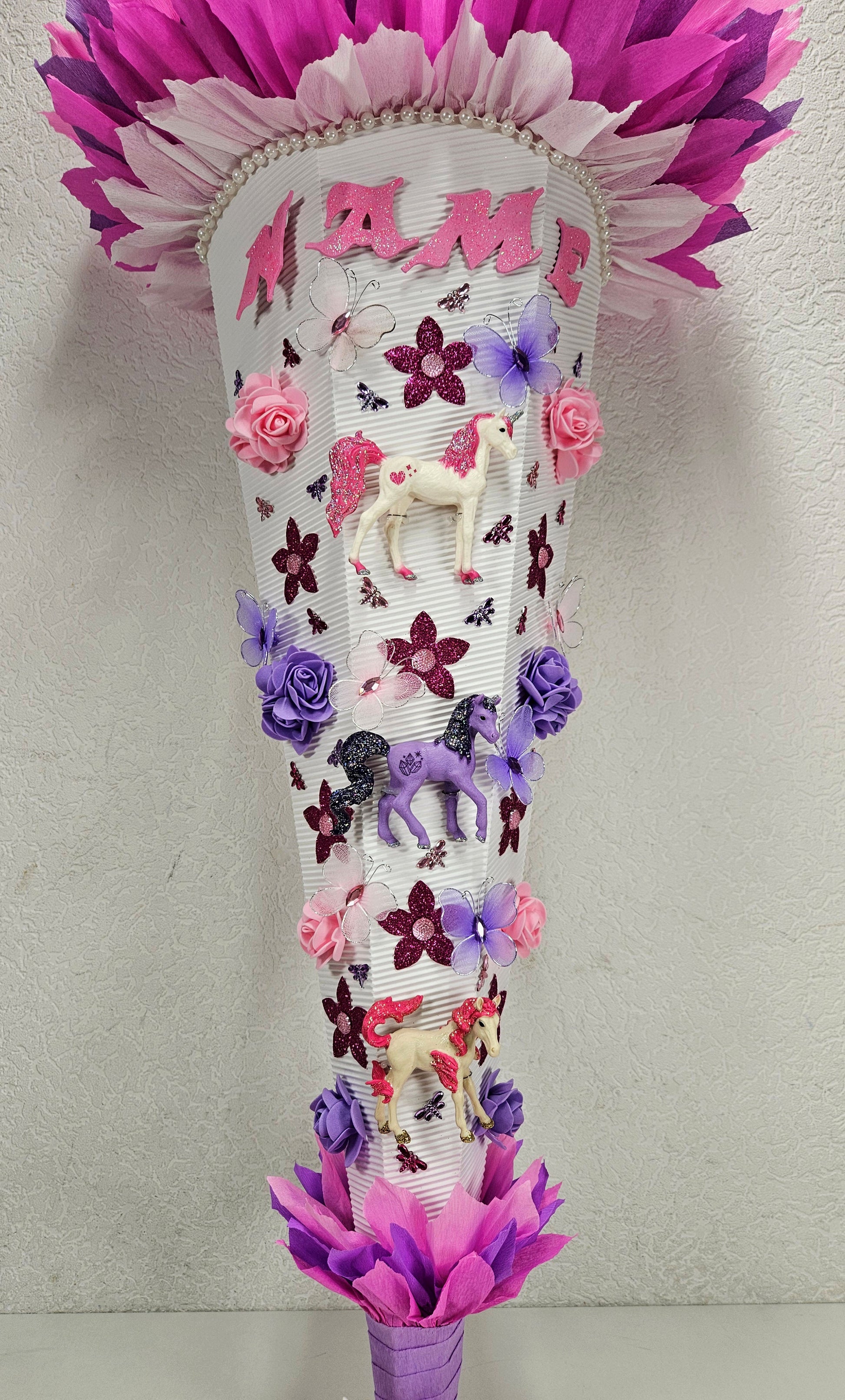 SCHULTÜTE ZUCKERTÜTE Einhörner Pferdchen für MÄDCHEN EINSCHULUNG 2025 rosa lila weiß