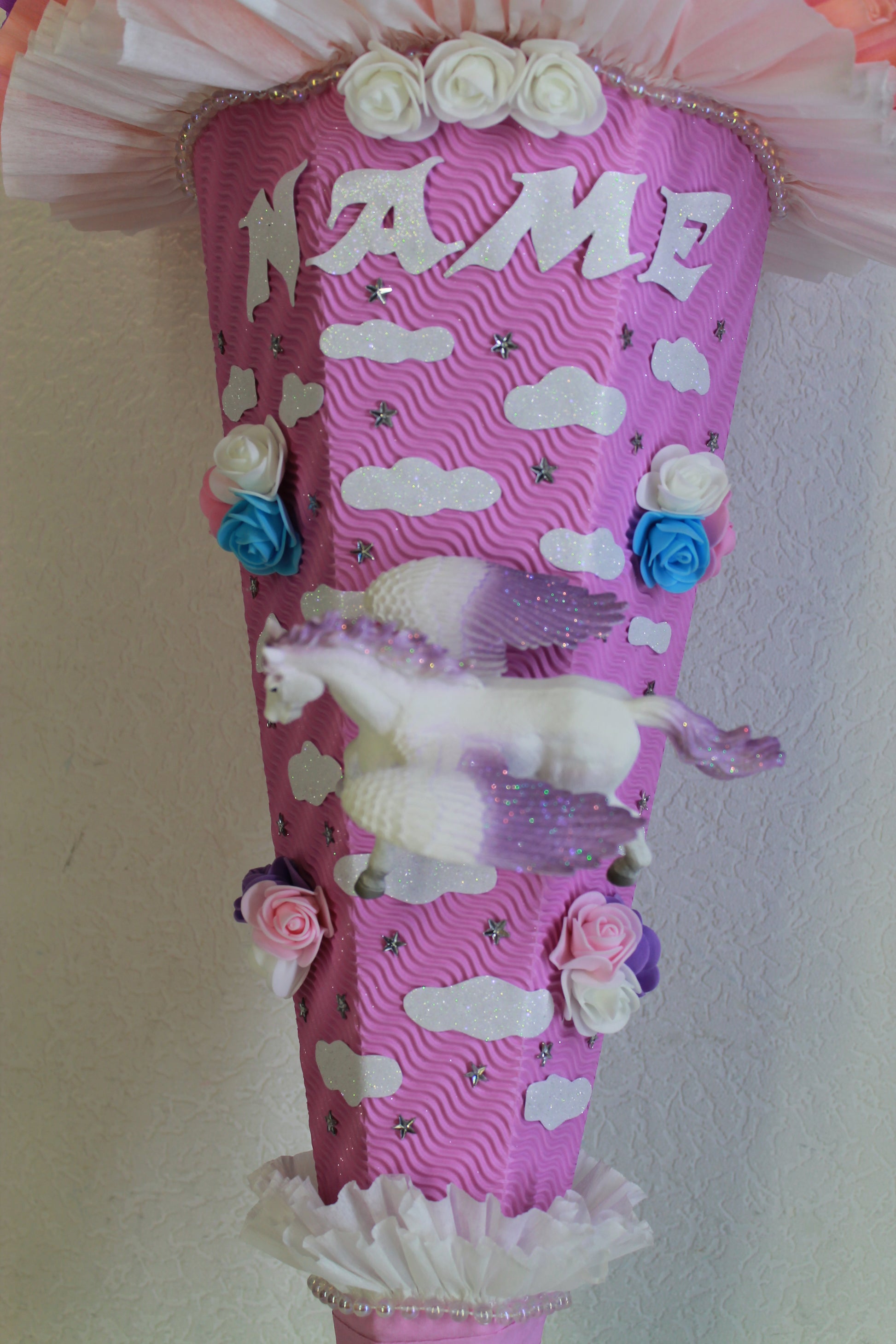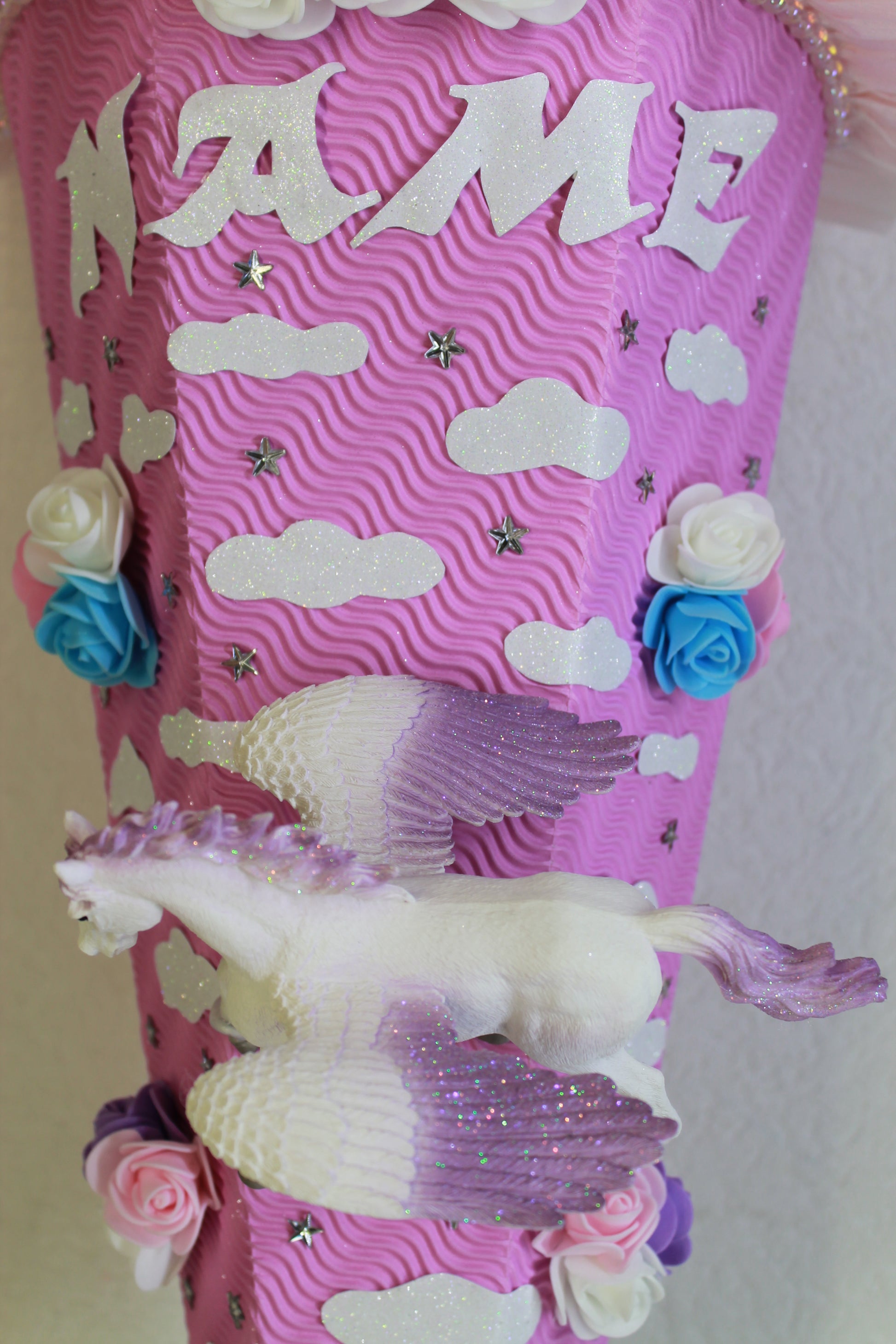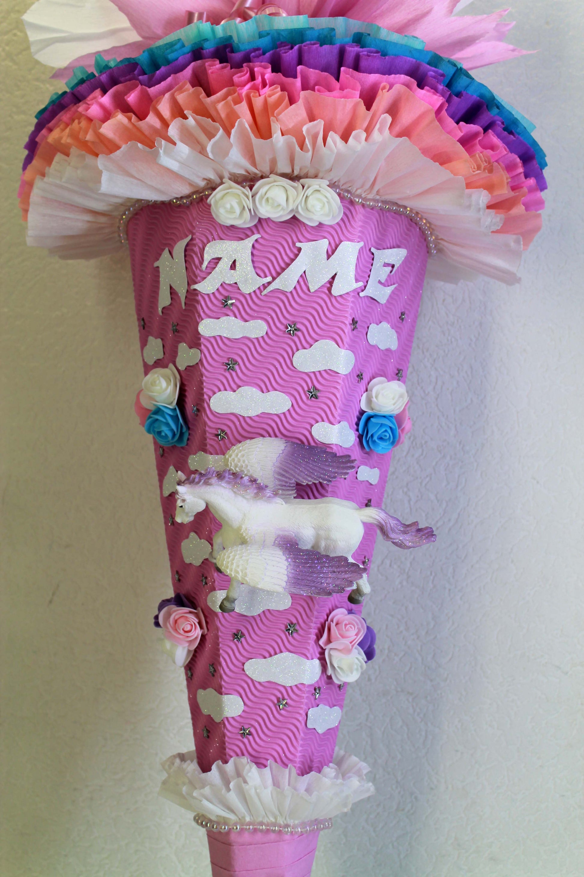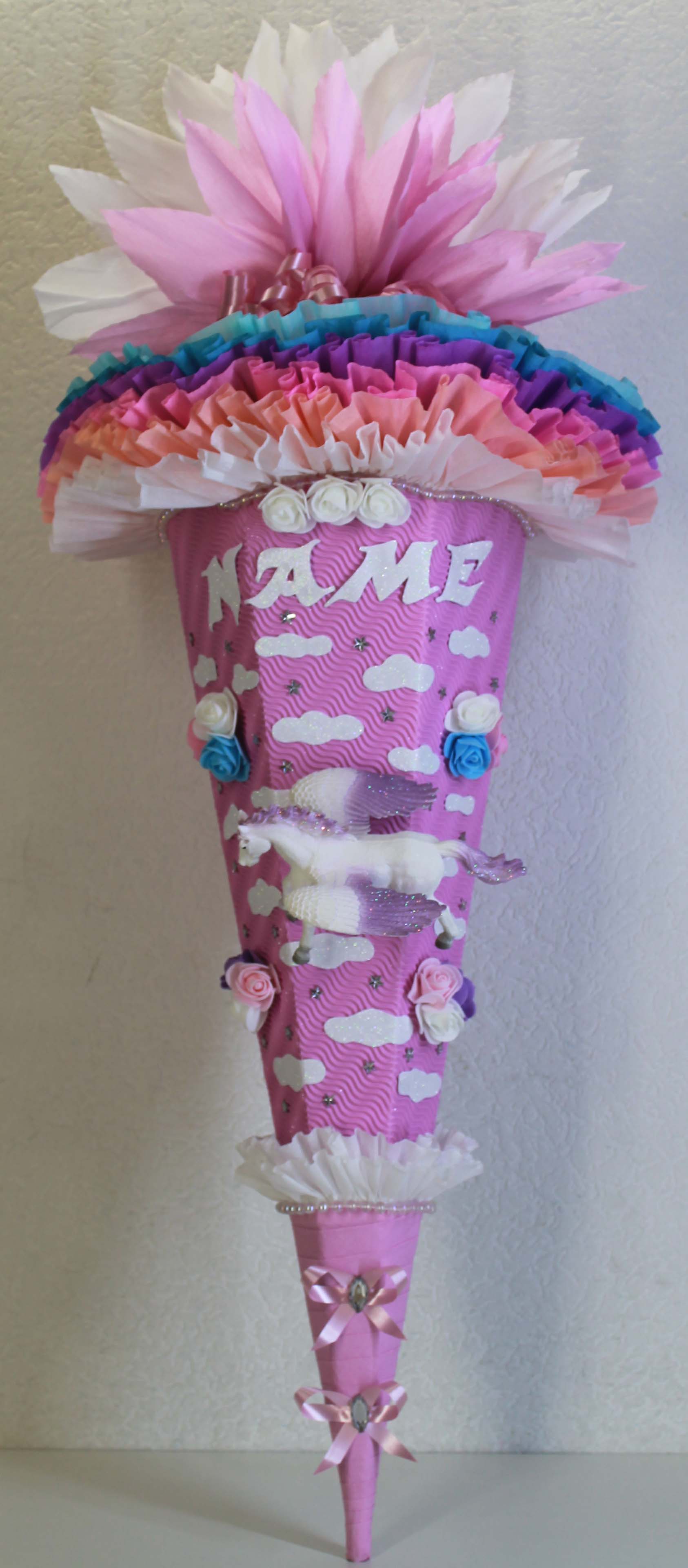 SCHULTÜTE ZUCKERTÜTE Pegasus Regenbogenfarben für MÄDCHEN EINSCHULUNG 2025 rosa lila weiß