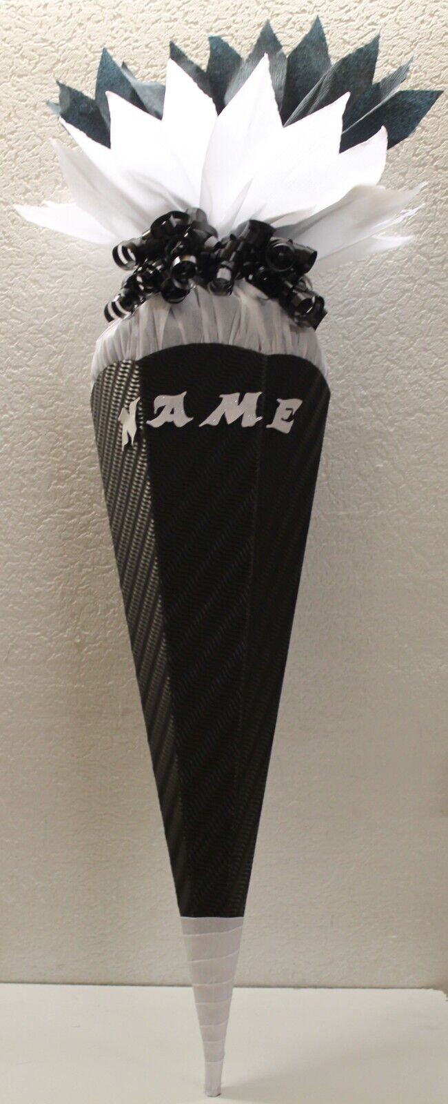 💡 Hinweis: Die Schultüte wird ohne Namen geliefert. Falls du eine Beschriftung mit Name, Doppelnamen oder Einschulungsdatum möchtest, kannst du passende Buchstaben/Zahlen separat in meinem Shop kaufen.