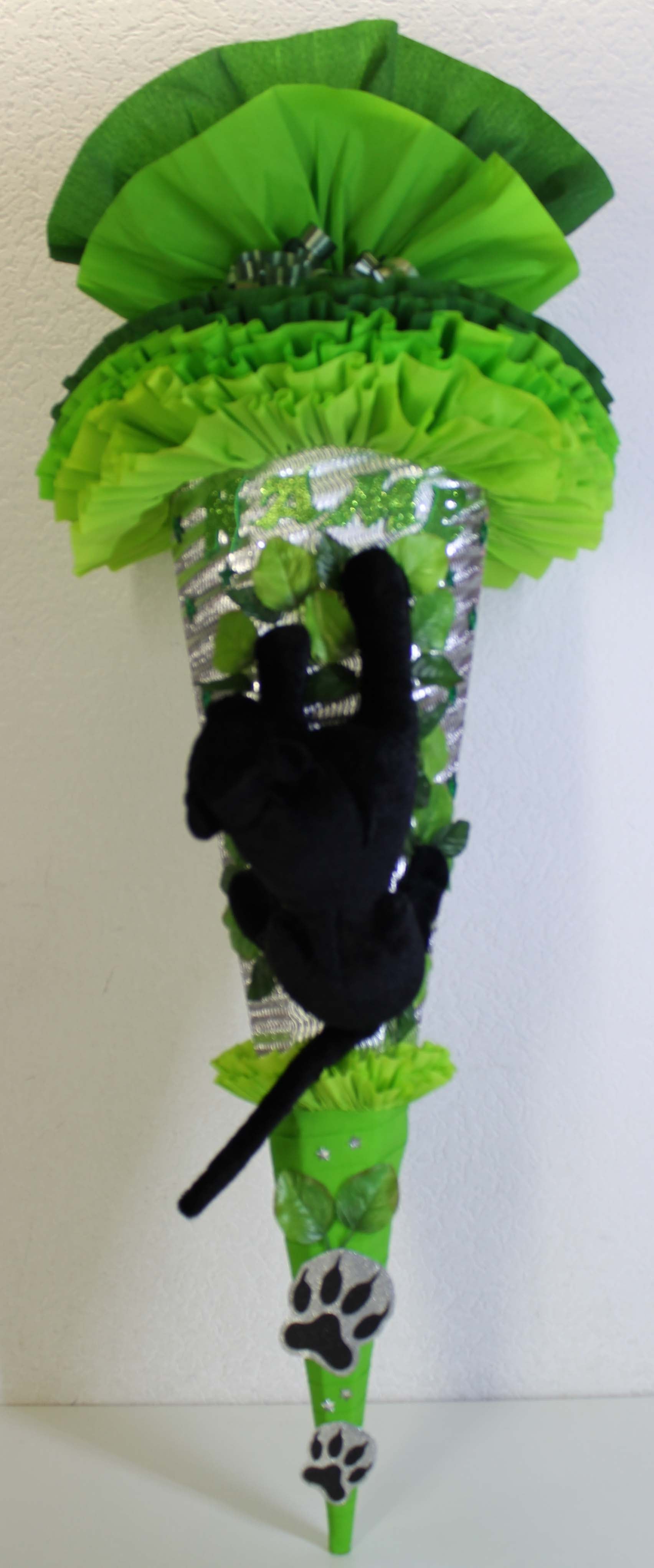 SCHULTÜTE ZUCKERTÜTE schwarze Panter Katze Rohling 77cm Jungs hellgrün silber