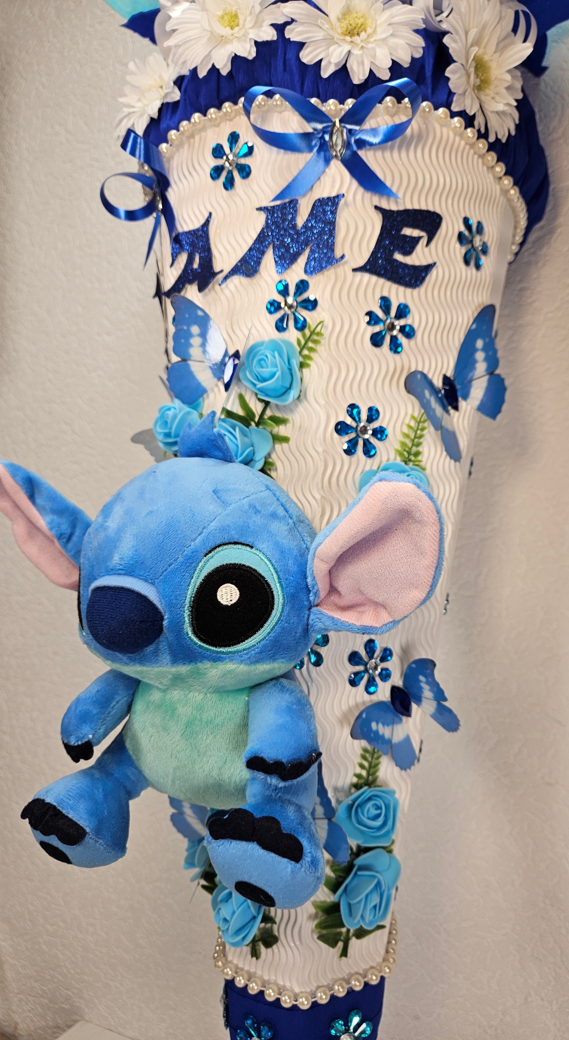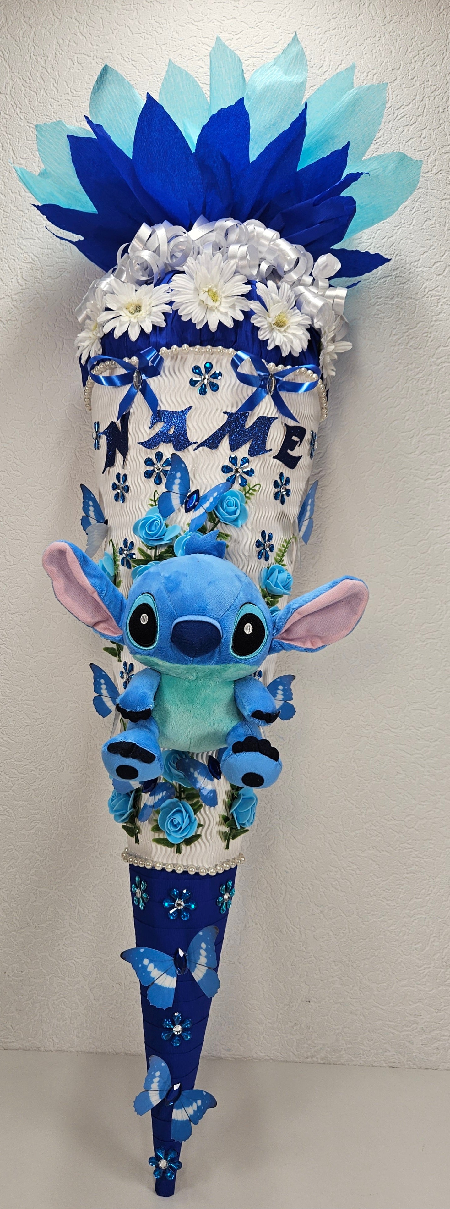 SCHULTÜTE ZUCKERTÜTE Stitch für MÄDCHEN EINSCHULUNG 2025 blau türkis weiß