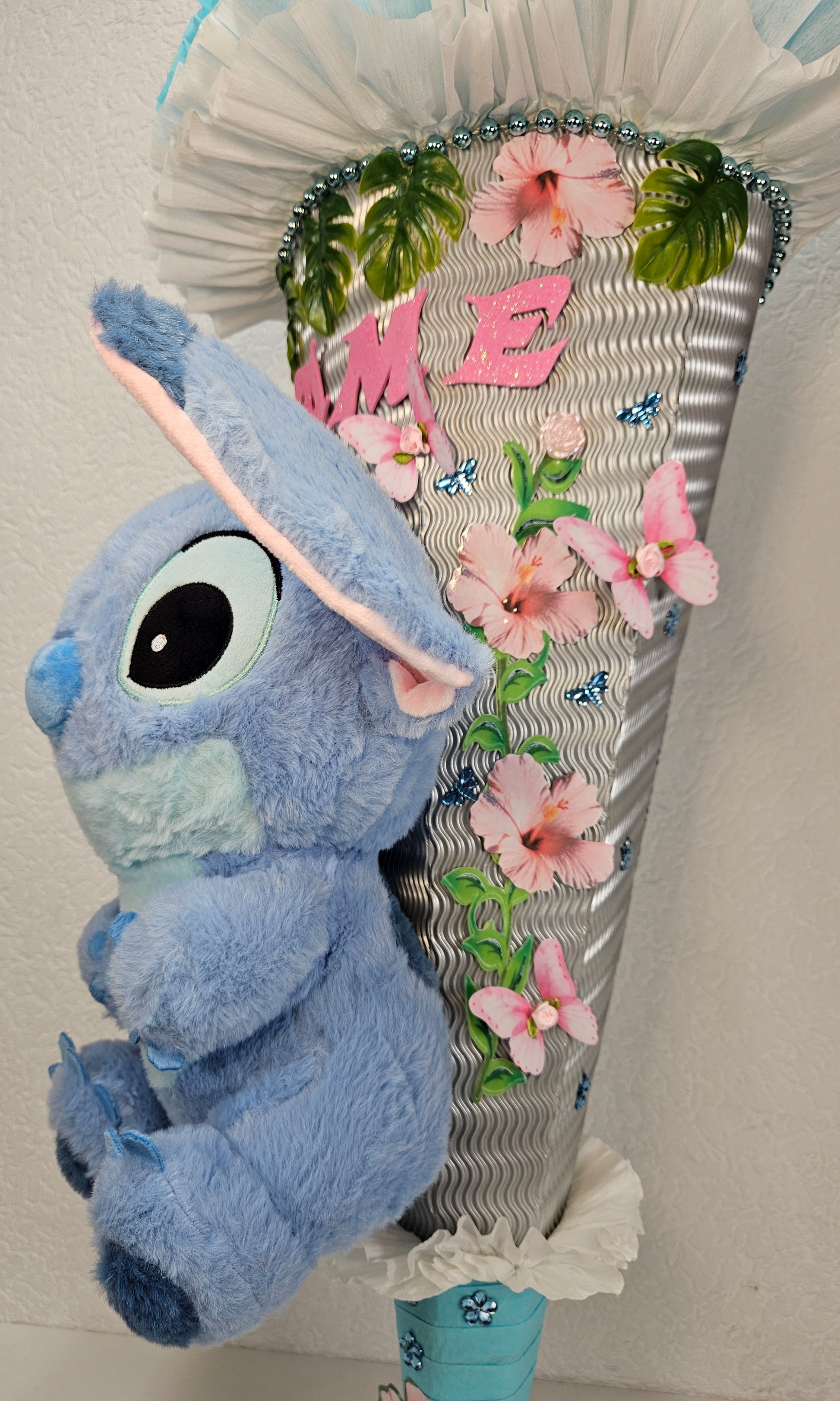 SCHULTÜTE ZUCKERTÜTE Stitch für MÄDCHEN EINSCHULUNG 2025 rosa türkis weiß