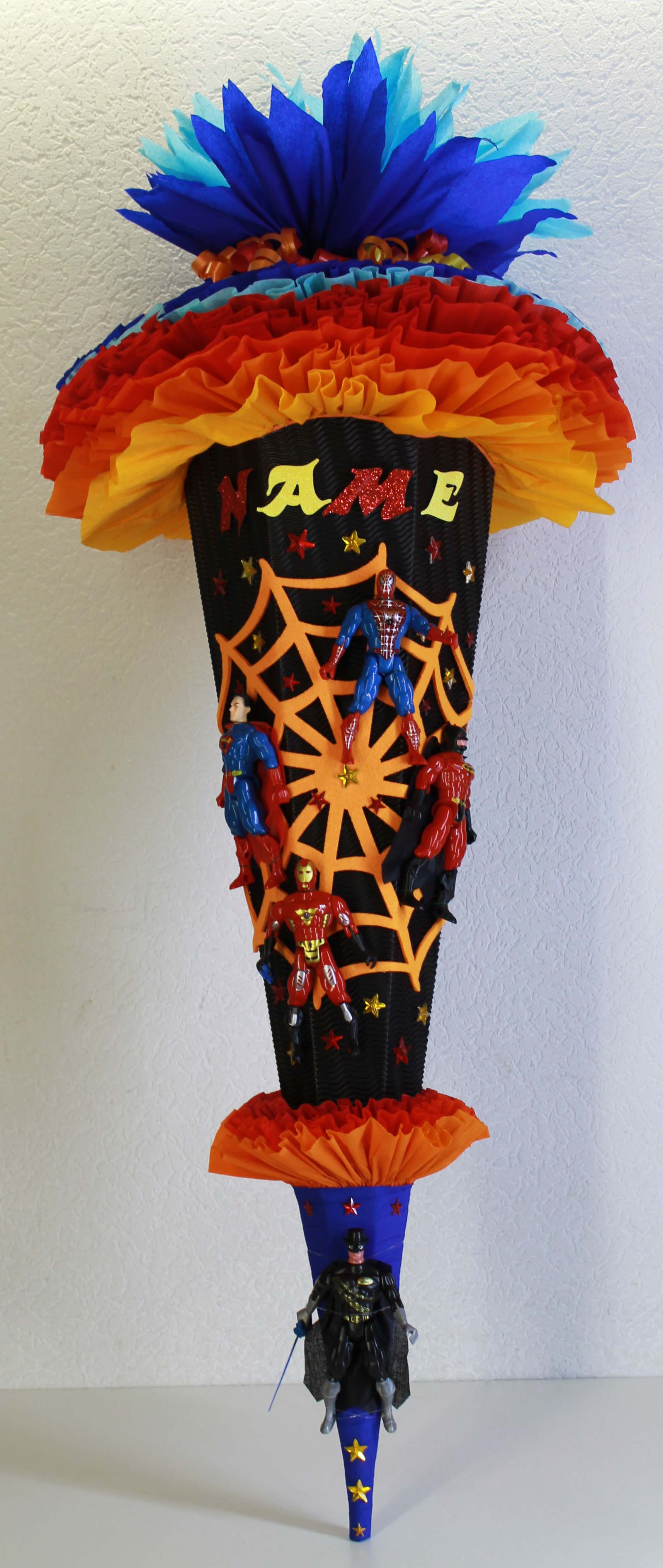 SCHULTÜTE ZUCKERTÜTE Super Helden Rohling 85cm Jungs dunkelblau rot gelb schwarz