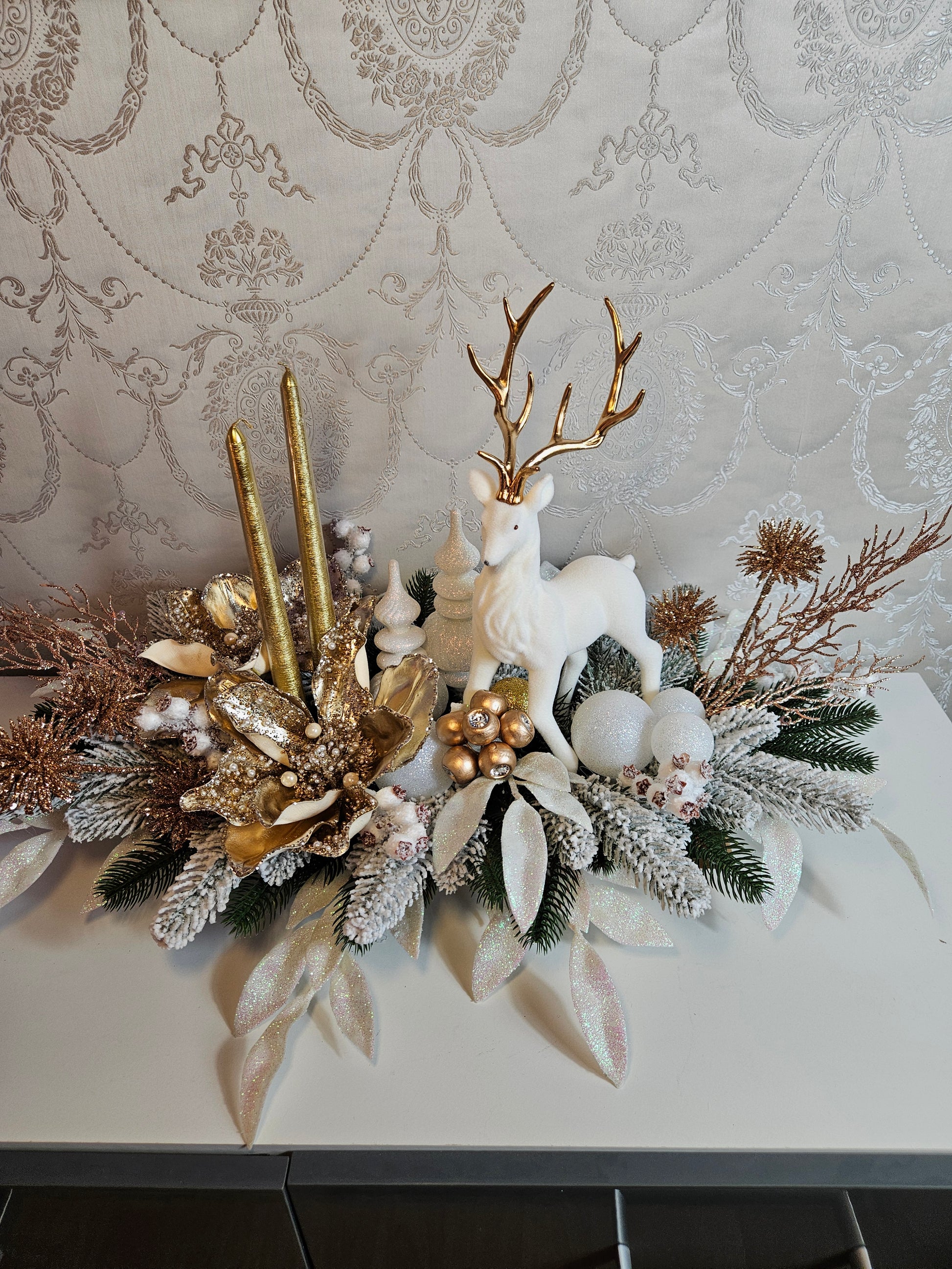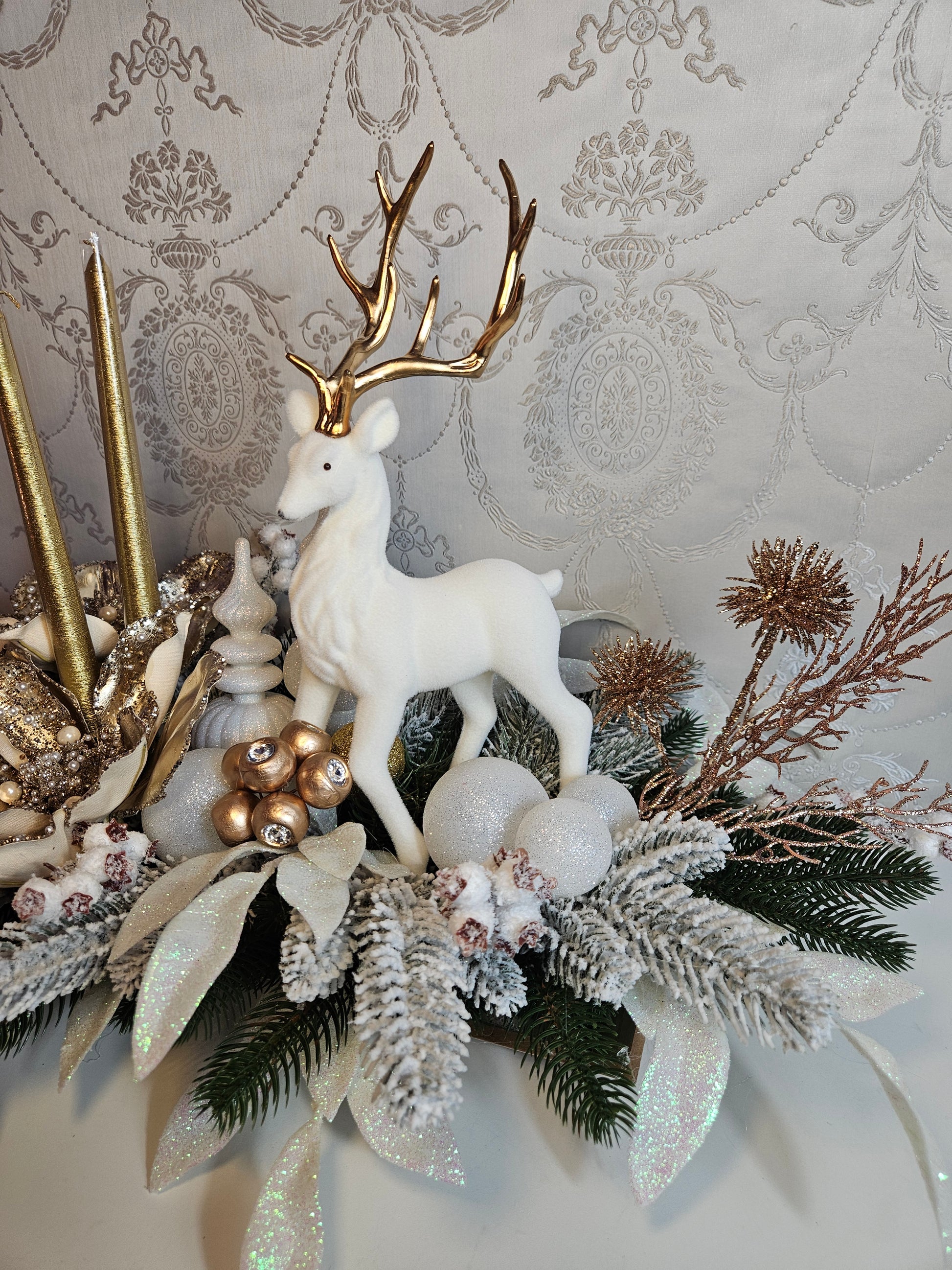 Weihnachtsgesteck + Adventsgesteck, Elch, Weihnachtsdeko Weihnachtsblumen Tischdekor, Tischgesteck, Winterdekor,Advent grün gold weiß