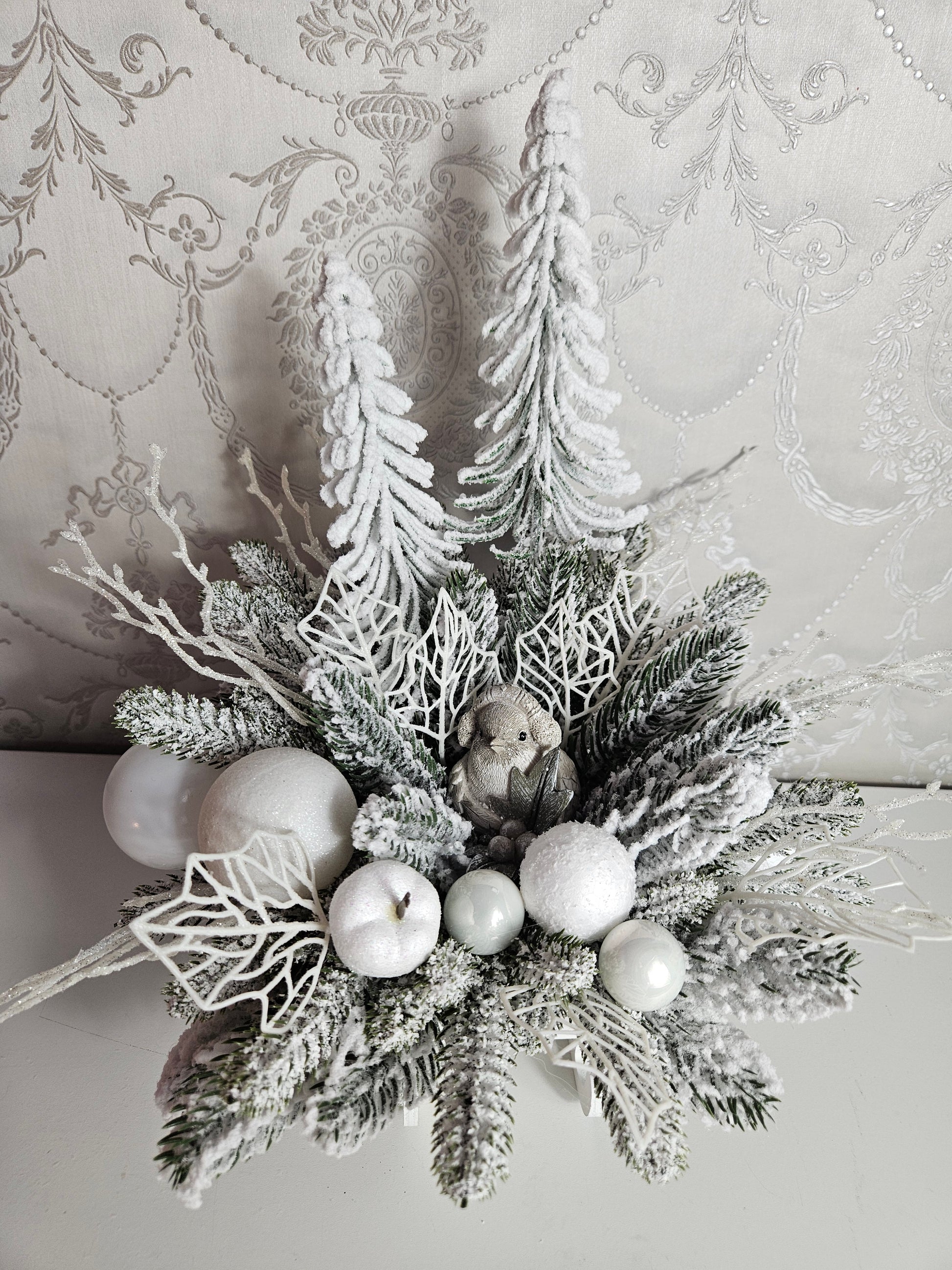 Weihnachtsgesteck + "Ein Vögelchen im Schlitten", Geschenk, Tischdekor, Tischgesteck, Winterdekor,Weihnachtsgeschenk