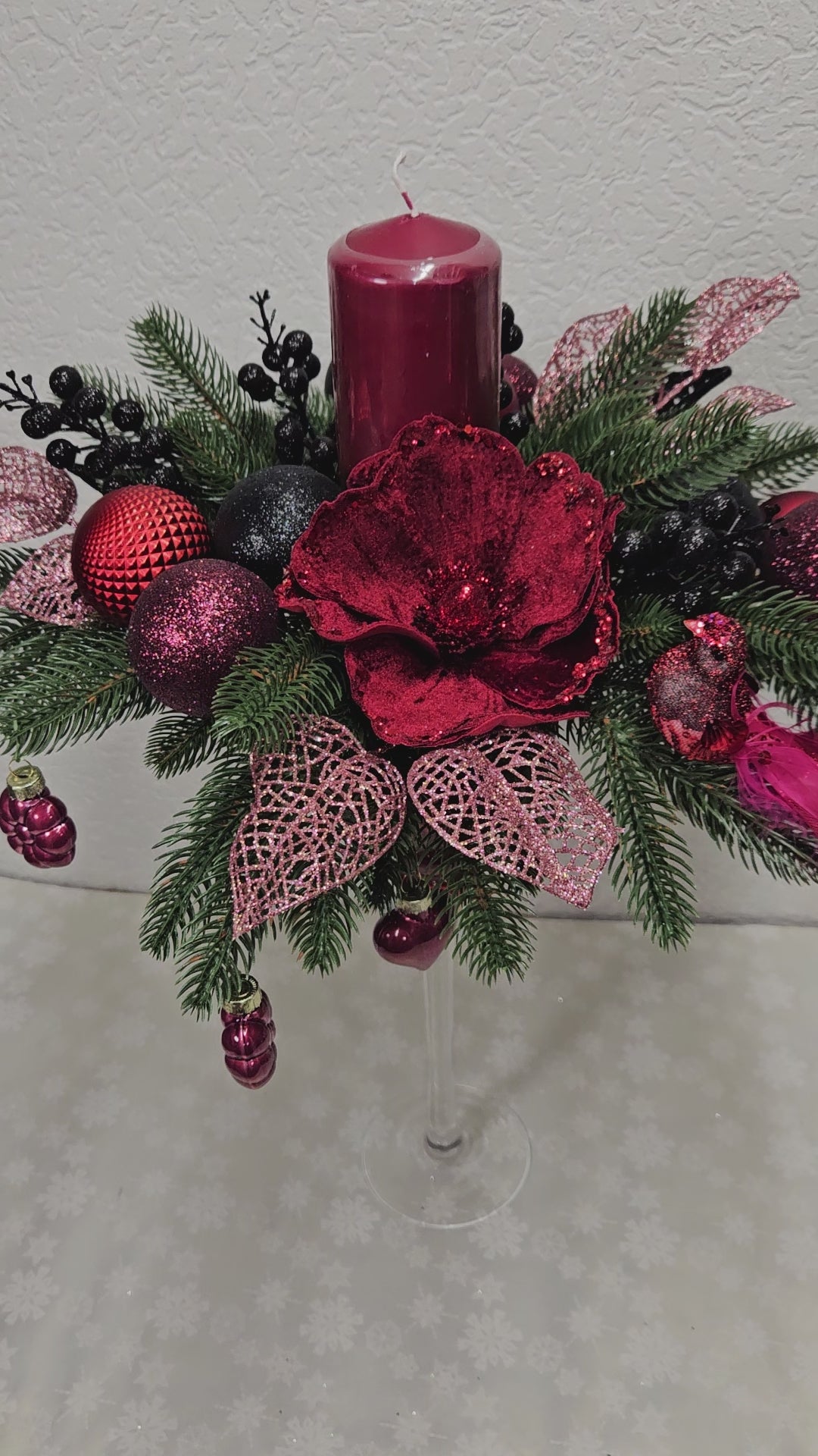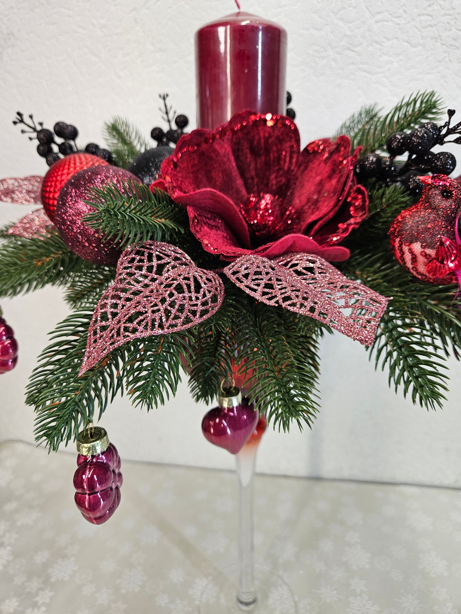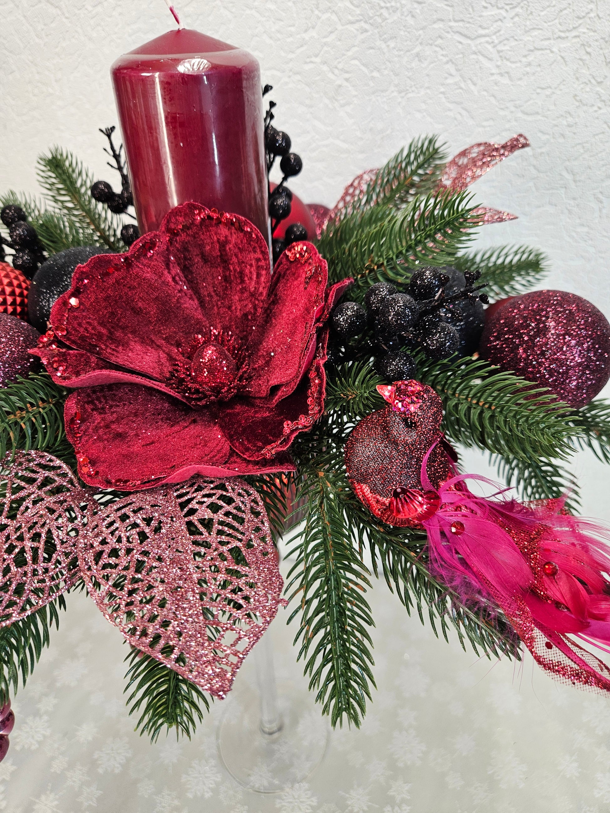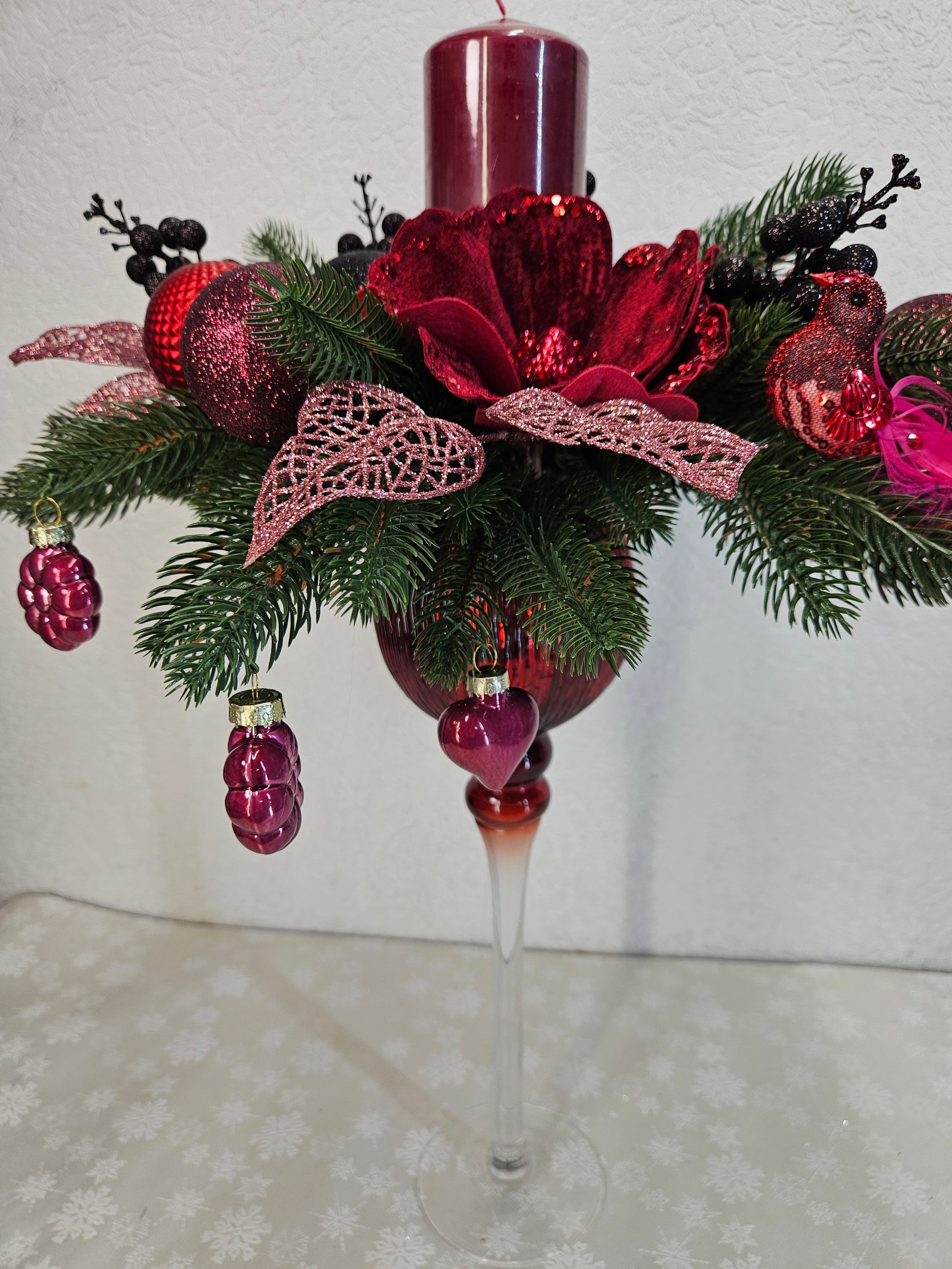 Weihnachtsgesteck, Windlicht Pokal, Weihnachtsdeko, Adventsgesteck, Tischgesteck, Festliche Dekor