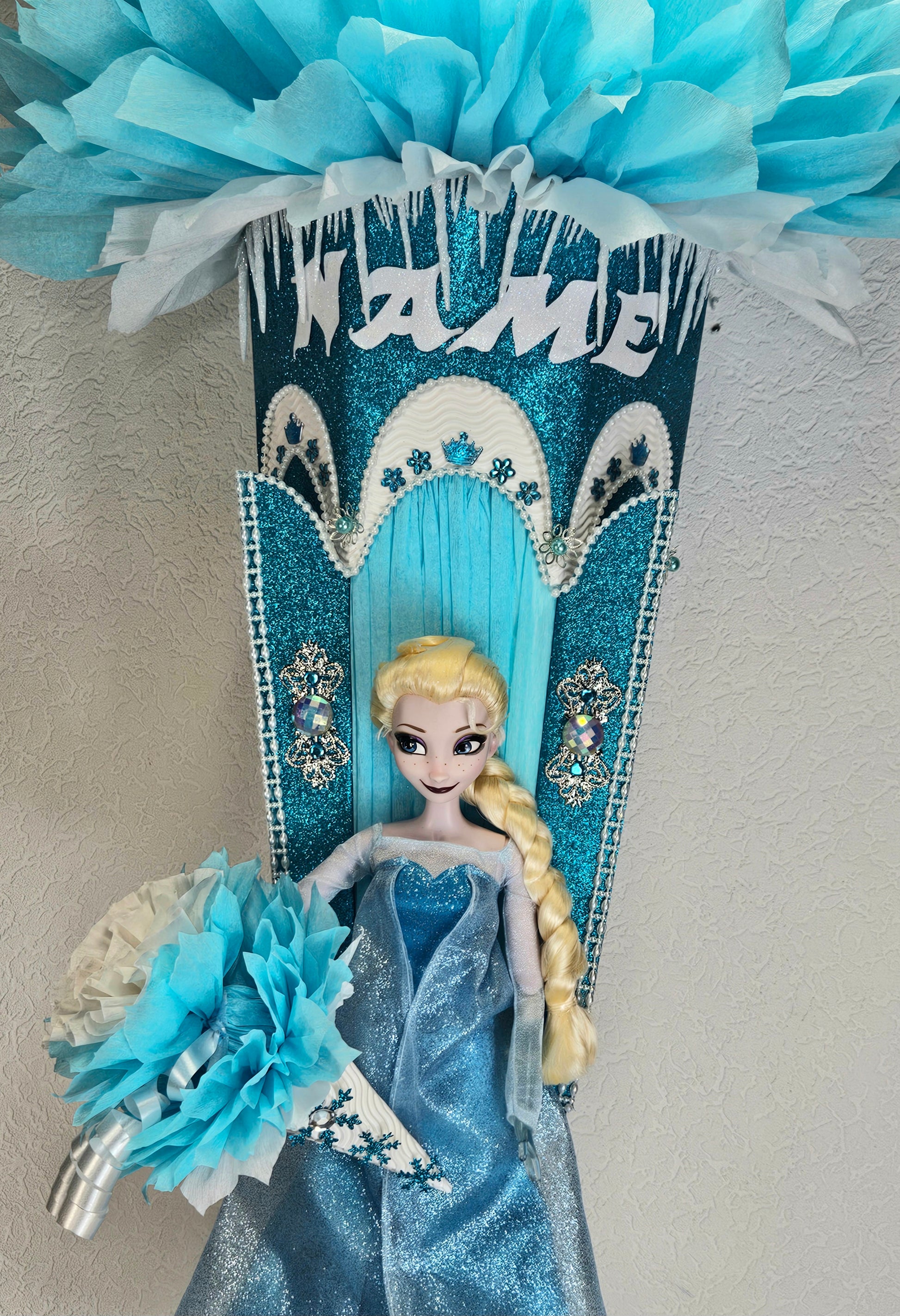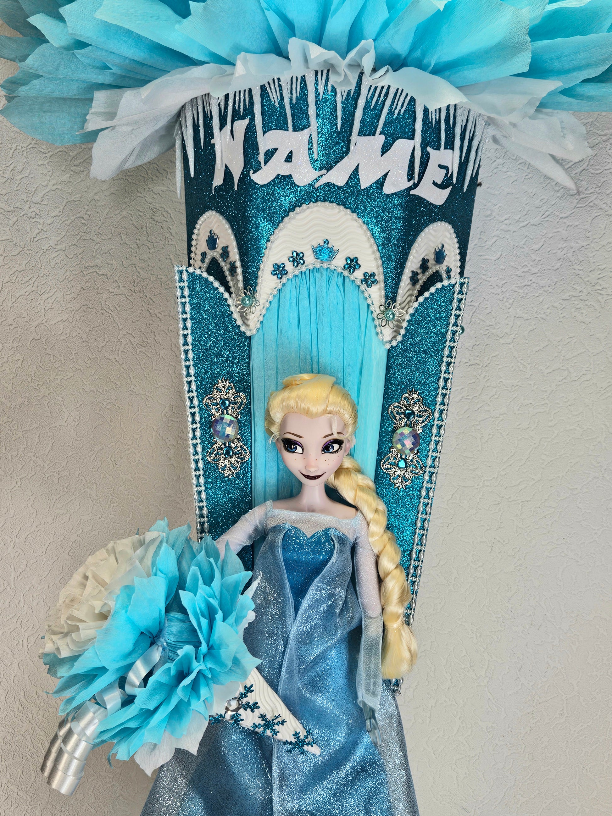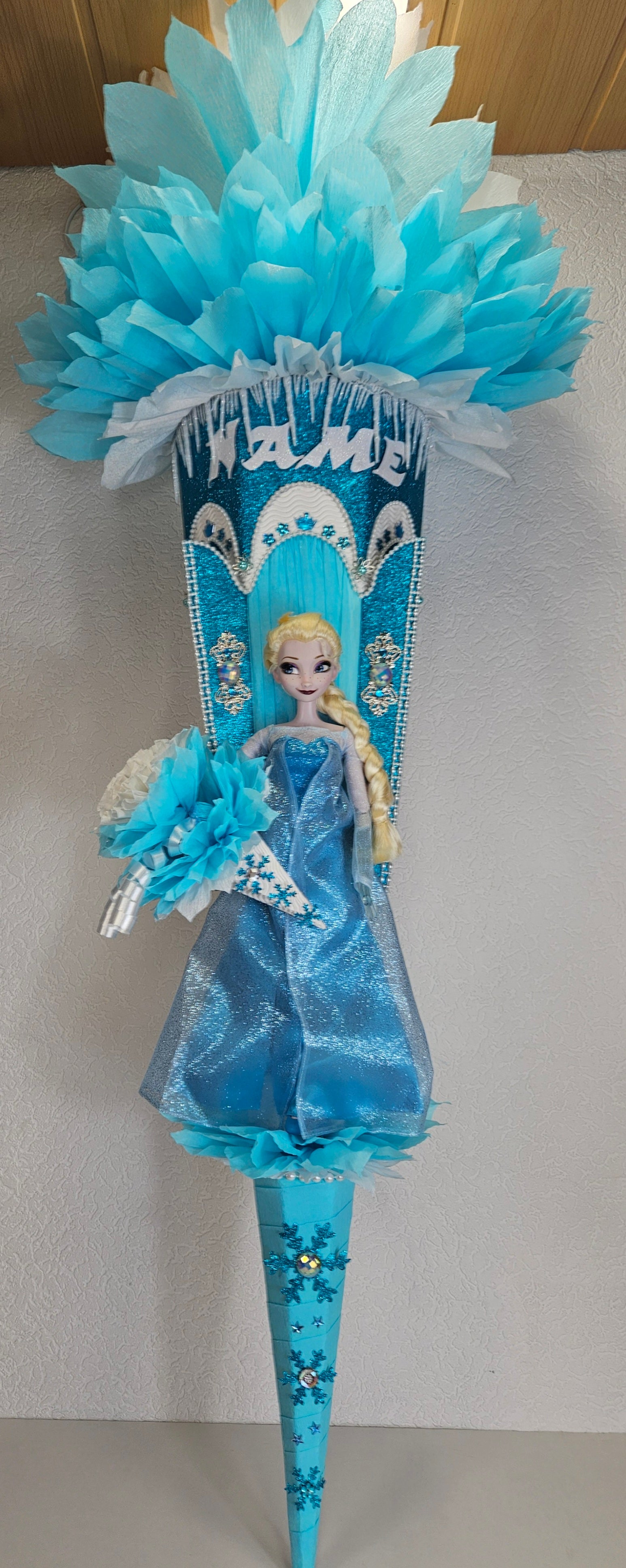 XXL SCHULTÜTE ZUCKERTÜTE "Eiskönigin Elsa" EINSCHULUNG 2025 türkis weiß