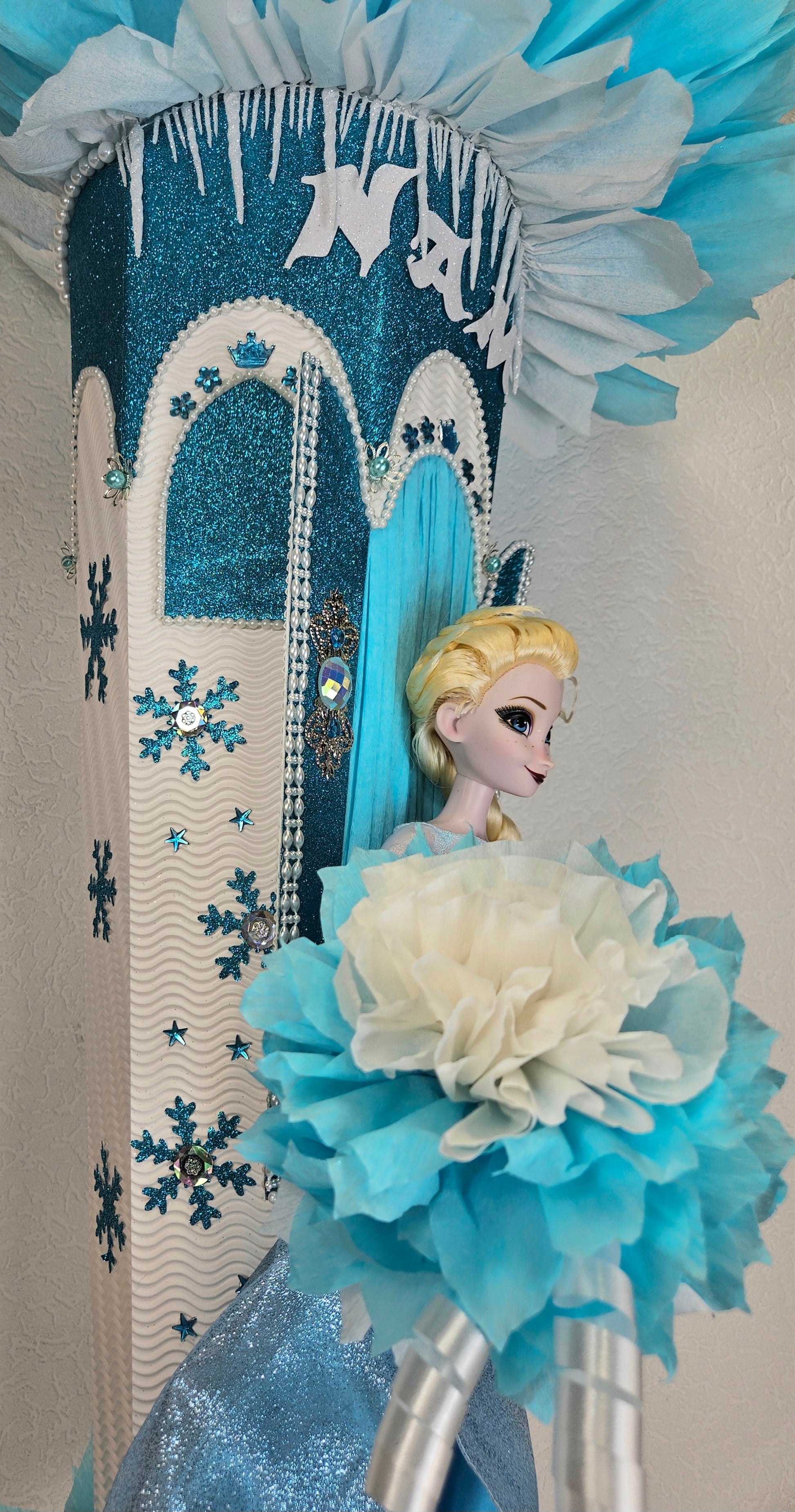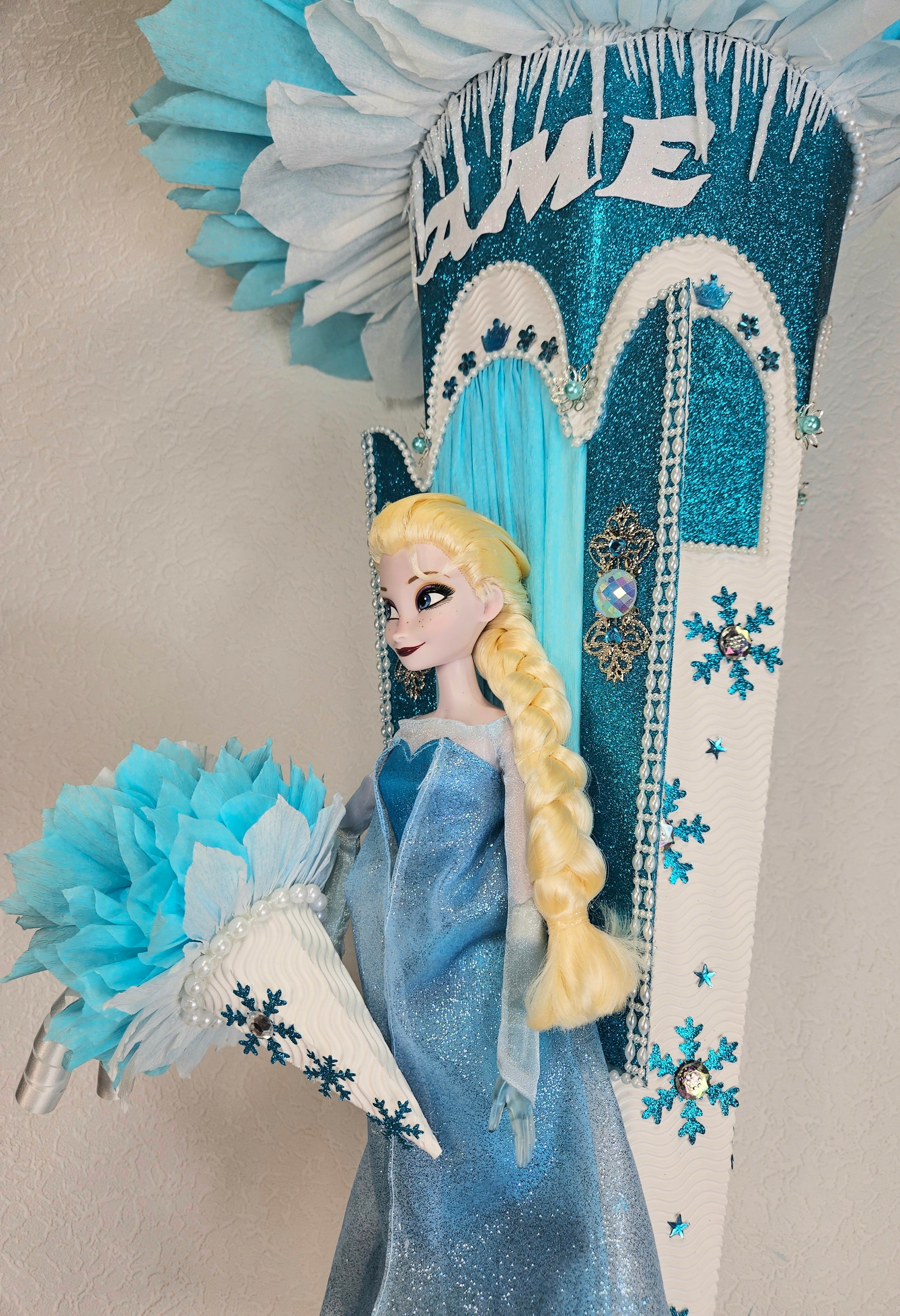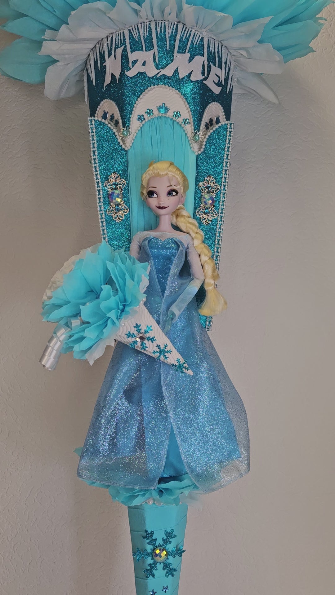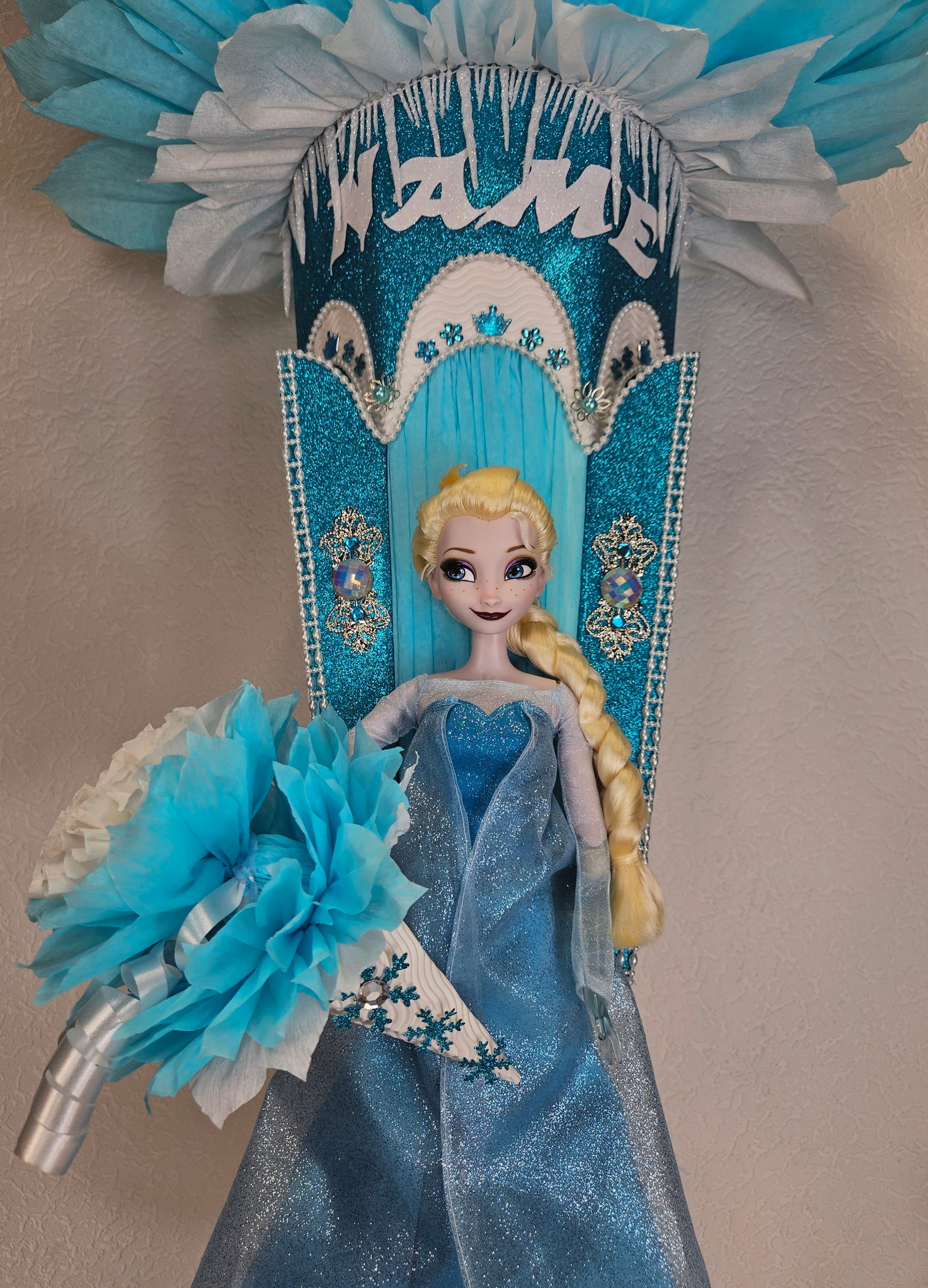 XXL SCHULTÜTE ZUCKERTÜTE "Eiskönigin Elsa" EINSCHULUNG 2025 türkis weiß